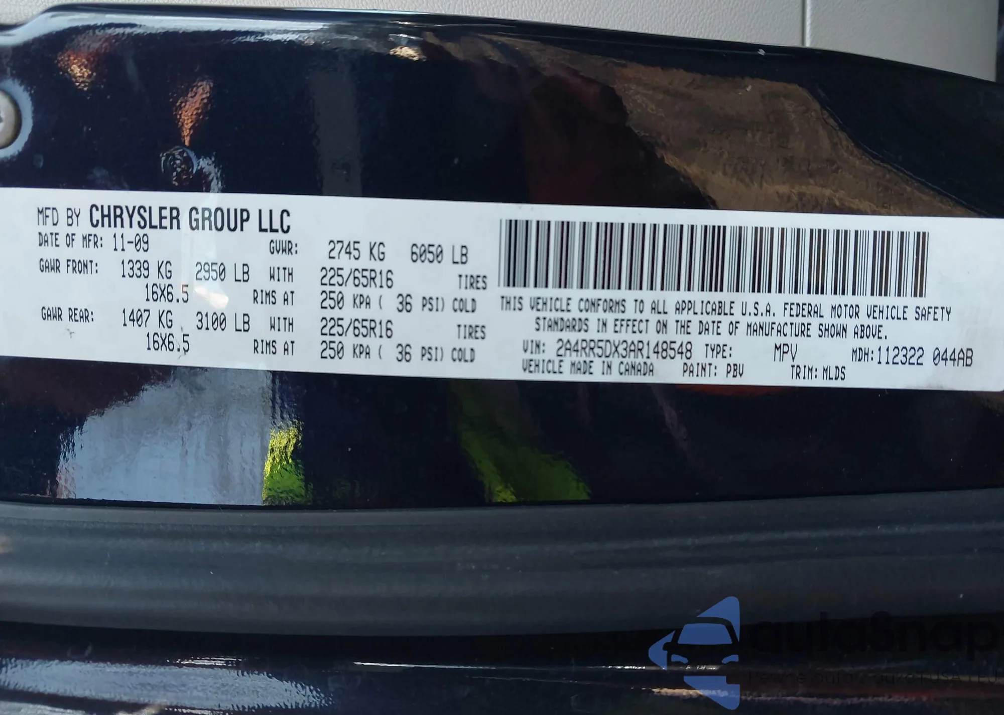 VIN: 2A4RR5DX3AR148548