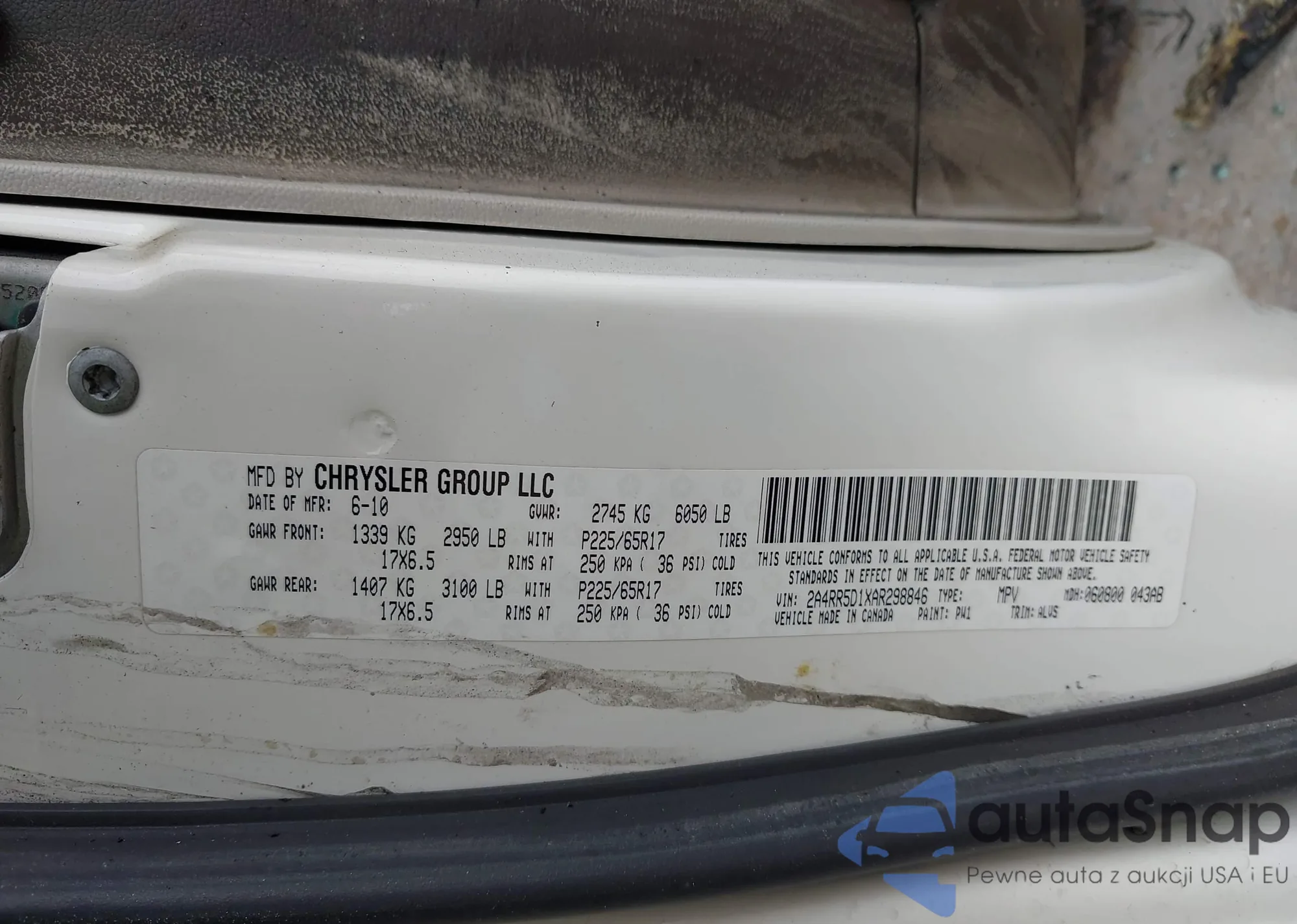Chrysler Town & Country 2010 – Historia pojazdu (sprzedany na IAAI)