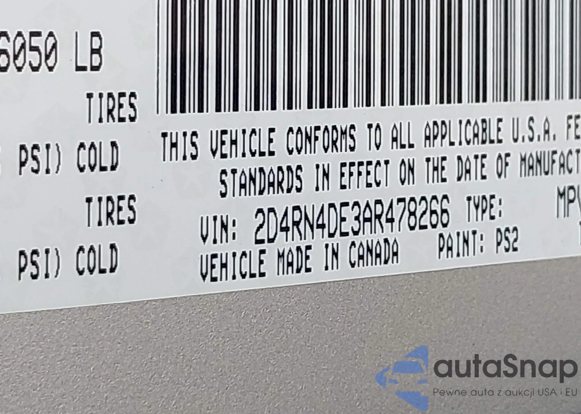 VIN: 2D4RN4DE3AR478266