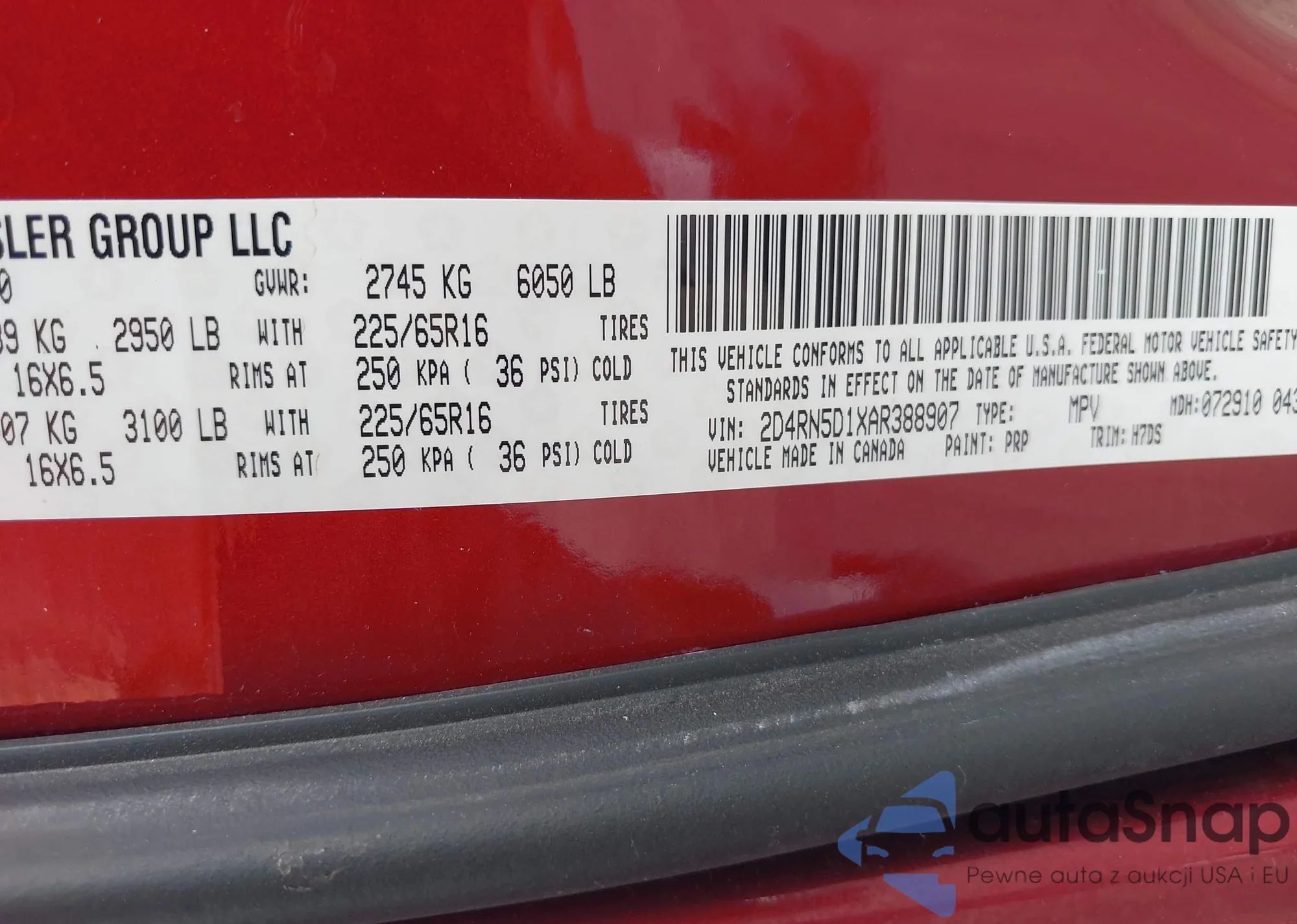 • VIN: 2D4RN5D1XAR388907