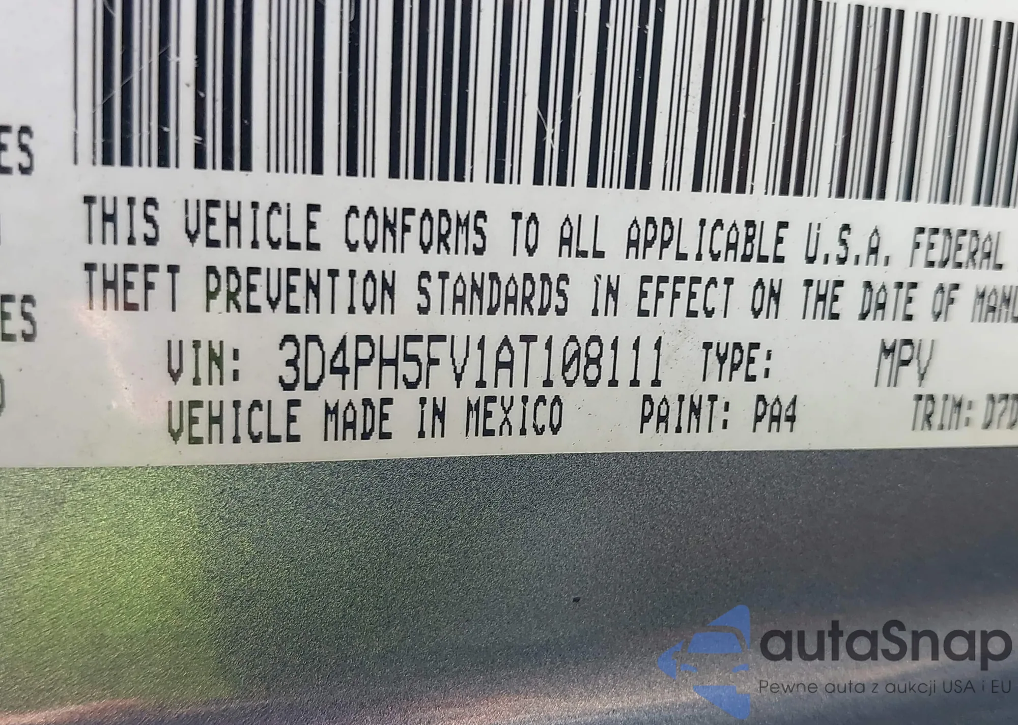 • VIN: 3D4PH5FV1AT108111