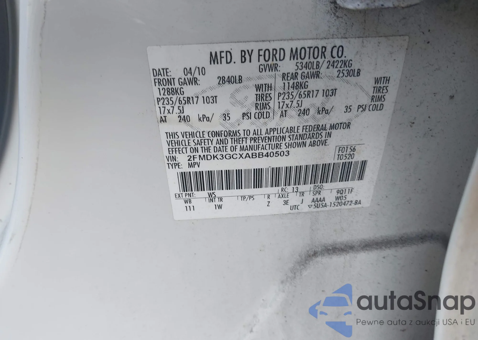 2FMDK3GCXABB40503 IAAI