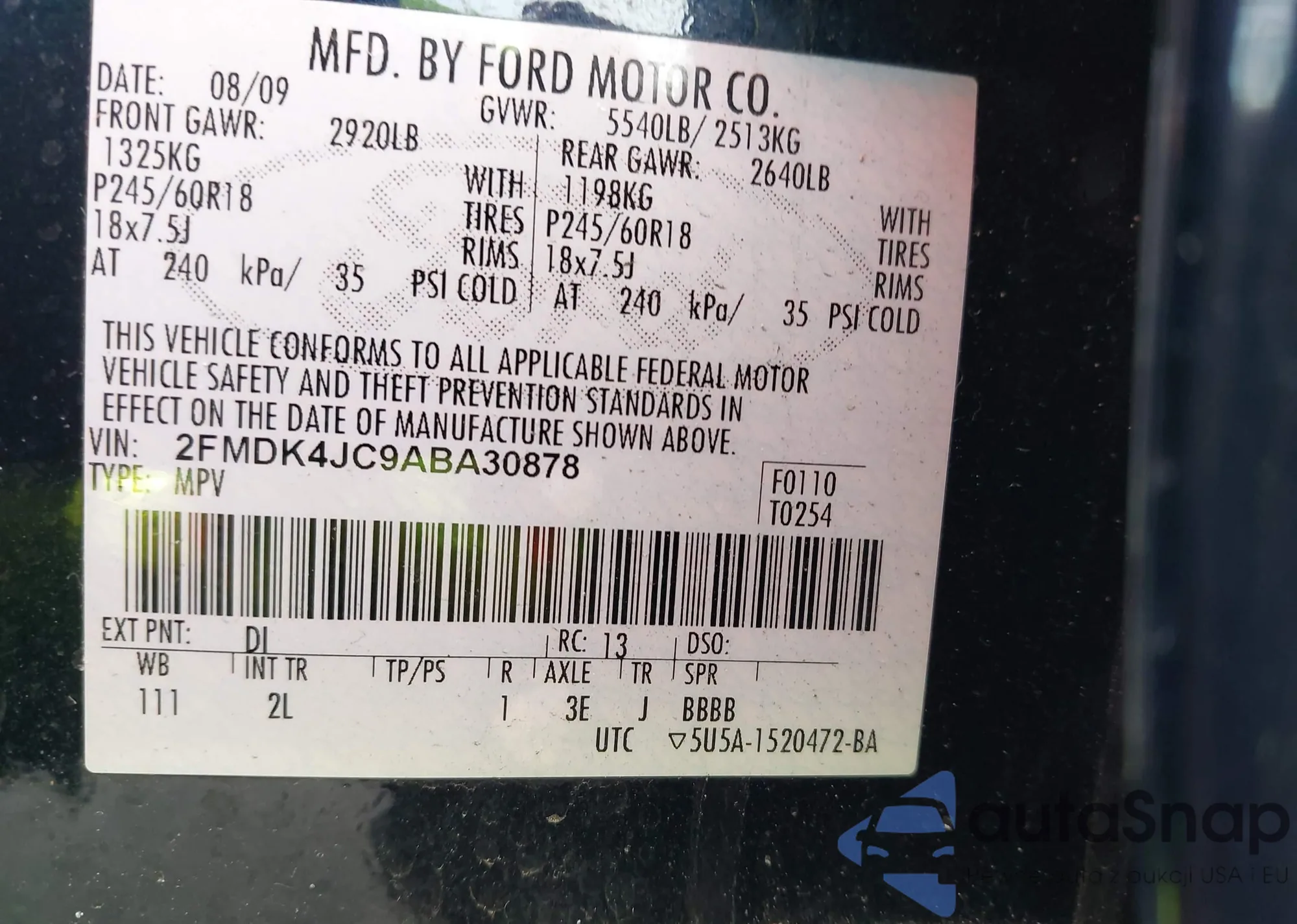 Samochód Ford Edge 2010 (VIN 2FMDK4JC9ABA30878) nie był wcześniej licytowany. Dokumenty są czyste, przebieg odpowiada lub jest niższy niż średnia rynku. Sprzedaje go firma ubezpieczeniowa – polecamy zakup. Dostawa do portu zajmie ok. 6–8 tygodni.