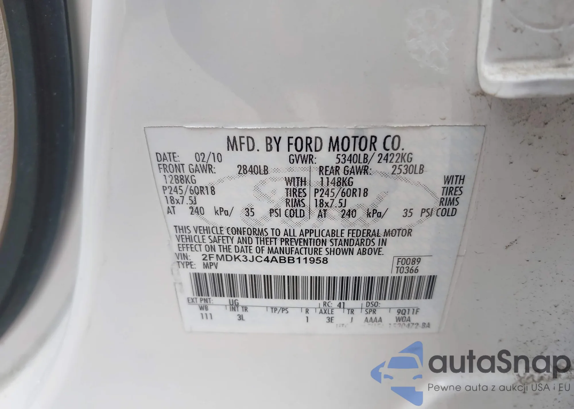 VIN: 2FMDK3JC4ABB11958