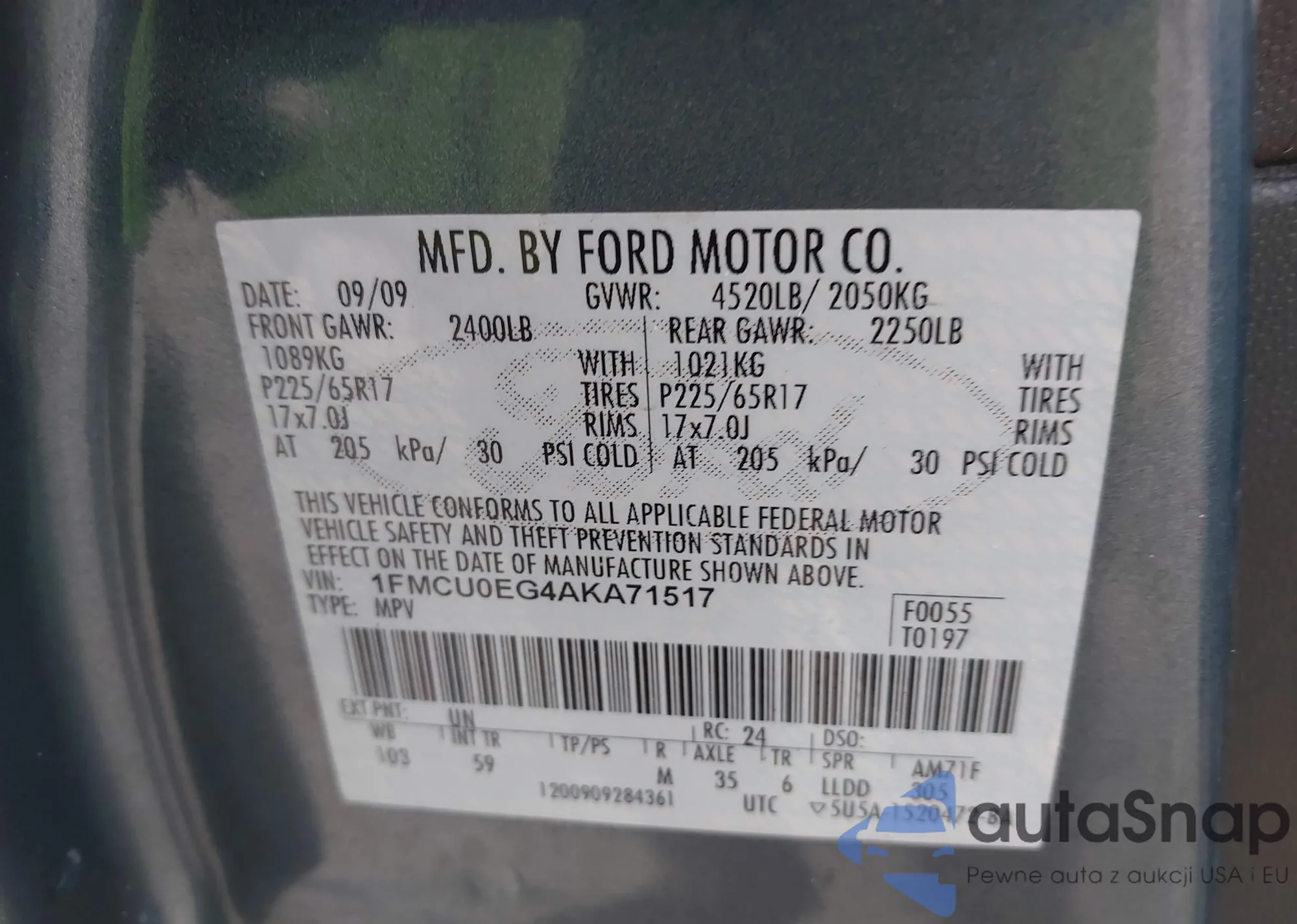 VIN: 1FMCU0EG4AKA71517