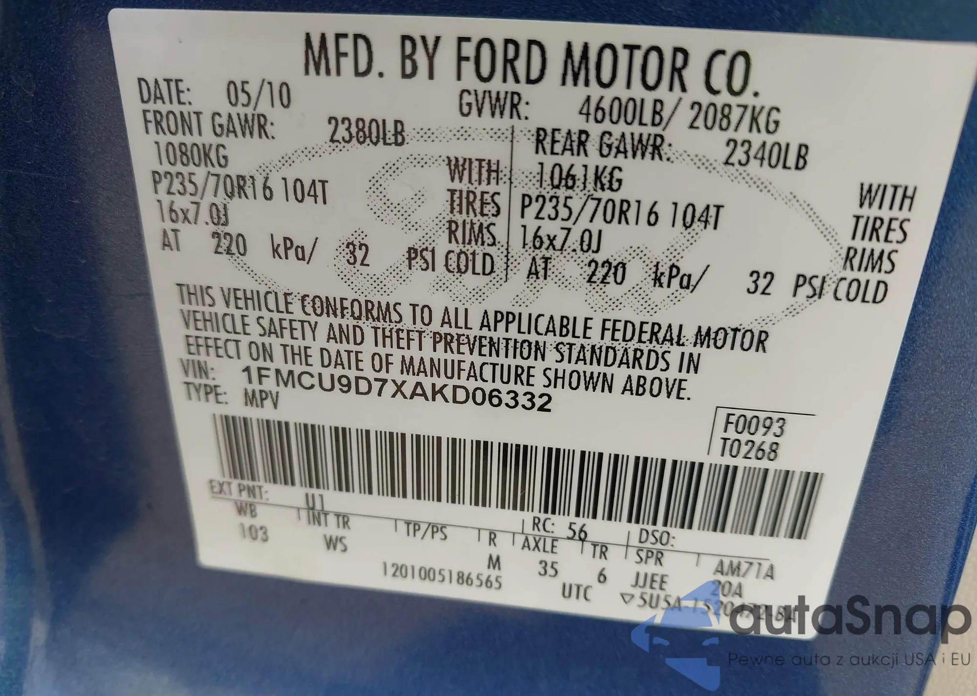 VIN: 1FMCU9D7XAKD06332