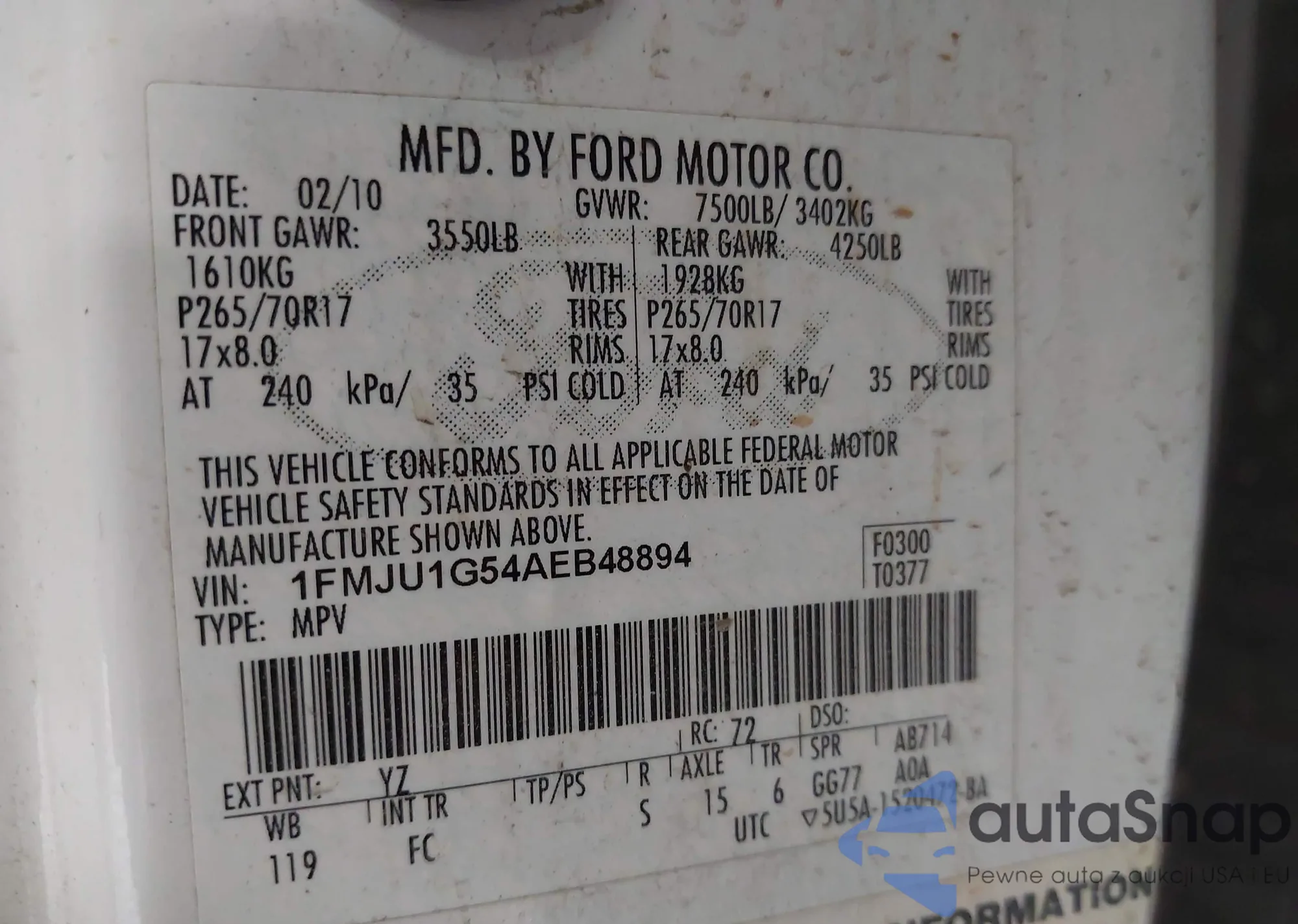 VIN: 1FMJU1G54AEB48894
