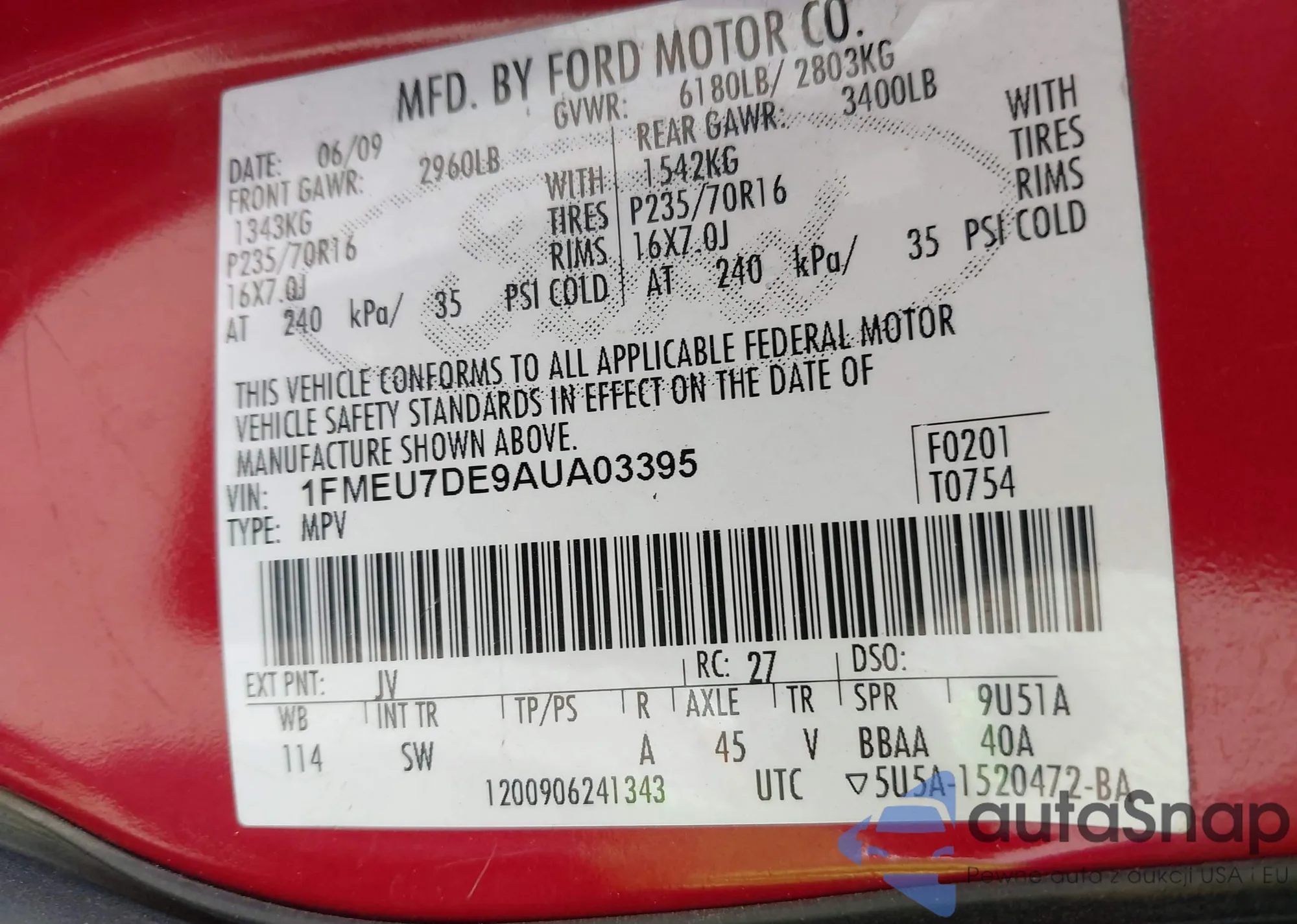 VIN: 1FMEU7DE9AUA03395