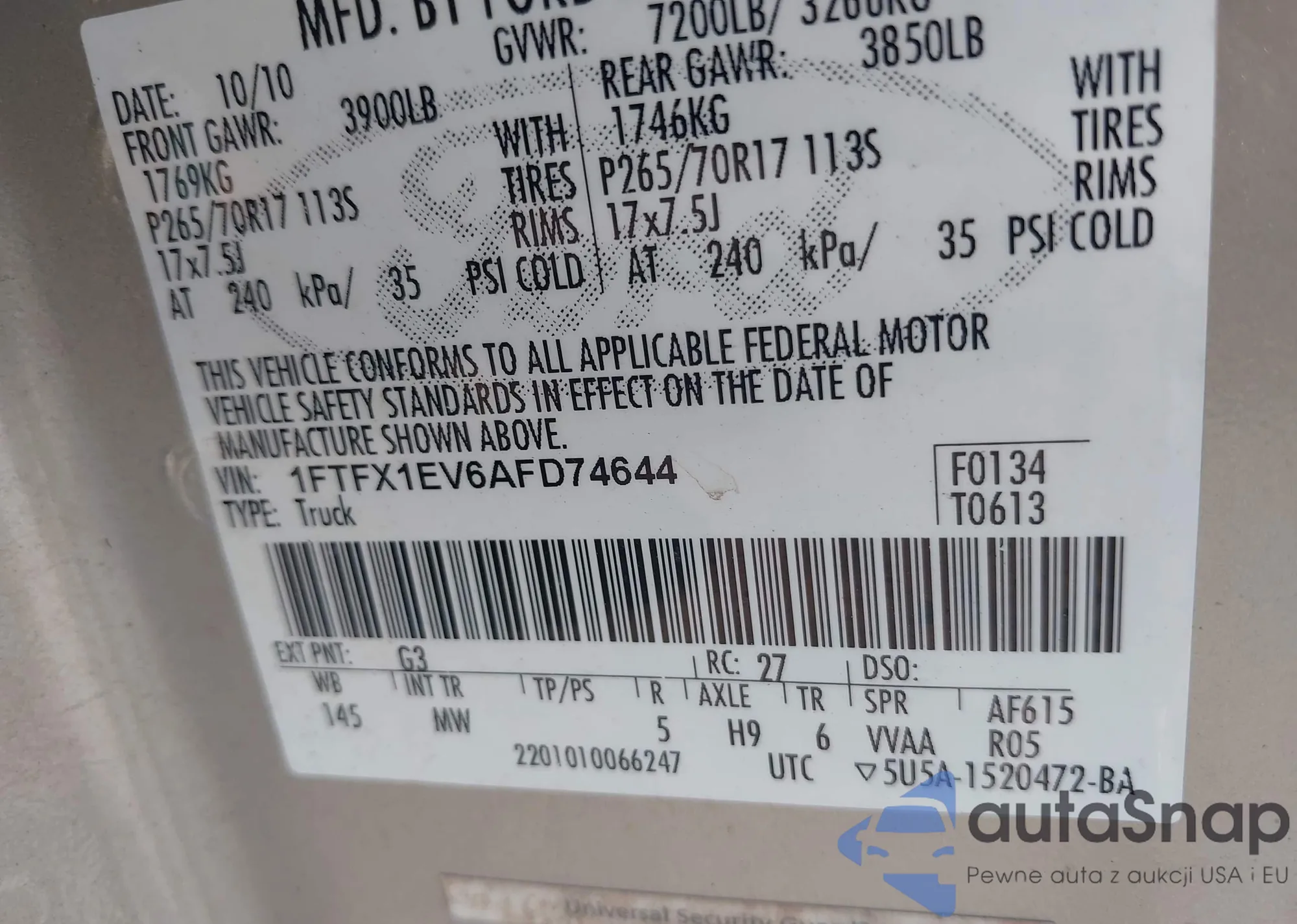 VIN: 1FTFX1EV6AFD74644