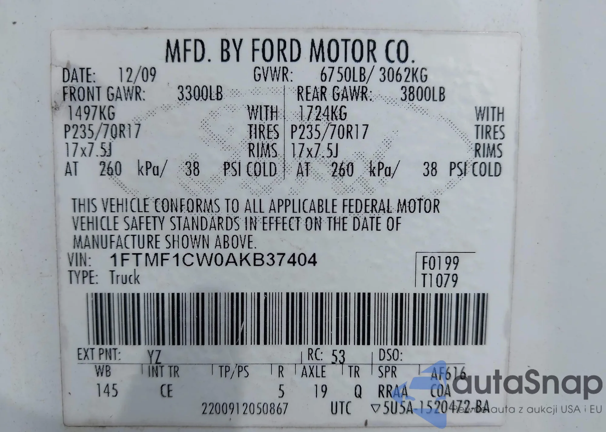 • VIN: 1FTMF1CW0AKB37404