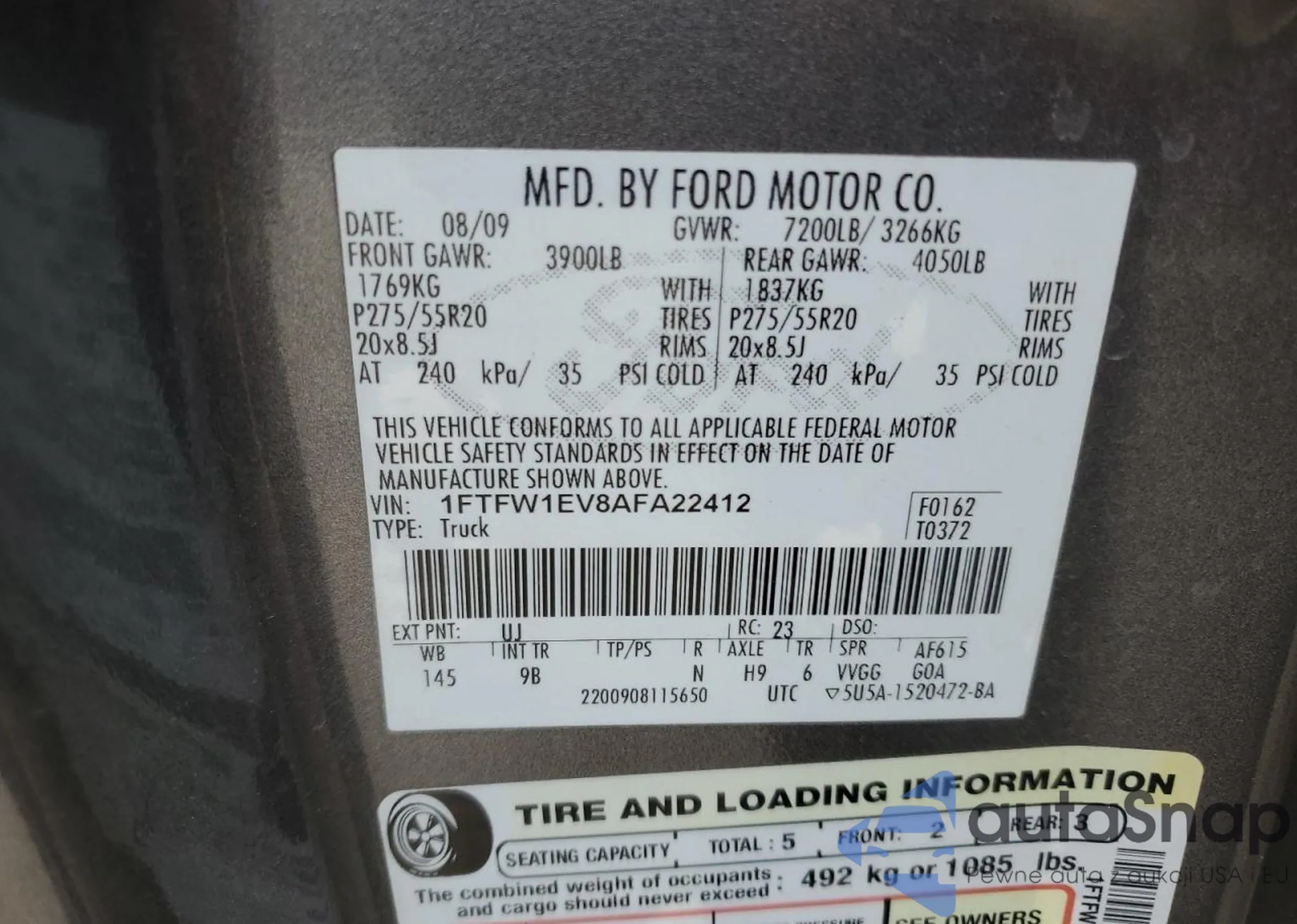 VIN: 1FTFW1EV8AFA22412