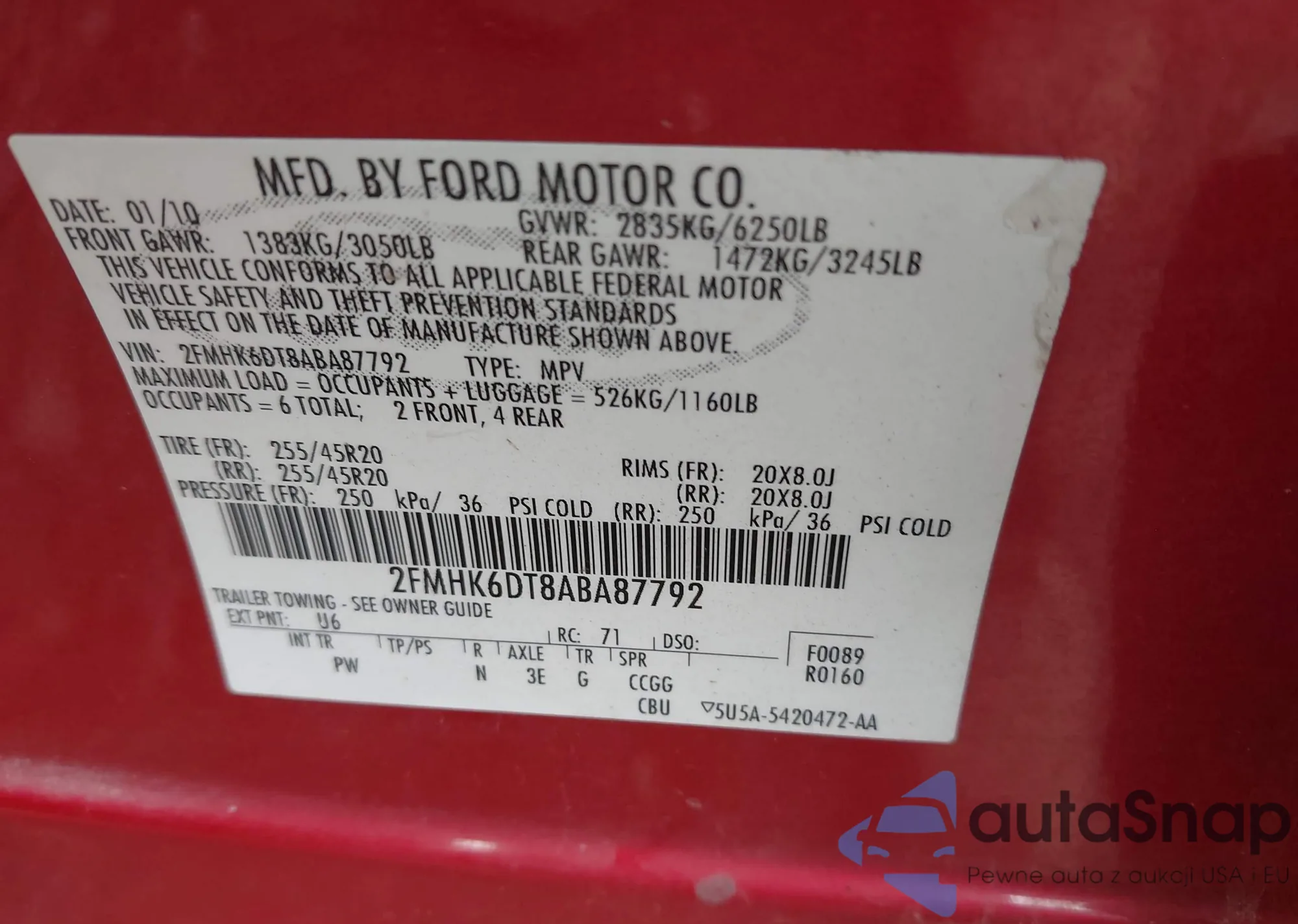 VIN: 2FMHK6DT8ABA87792