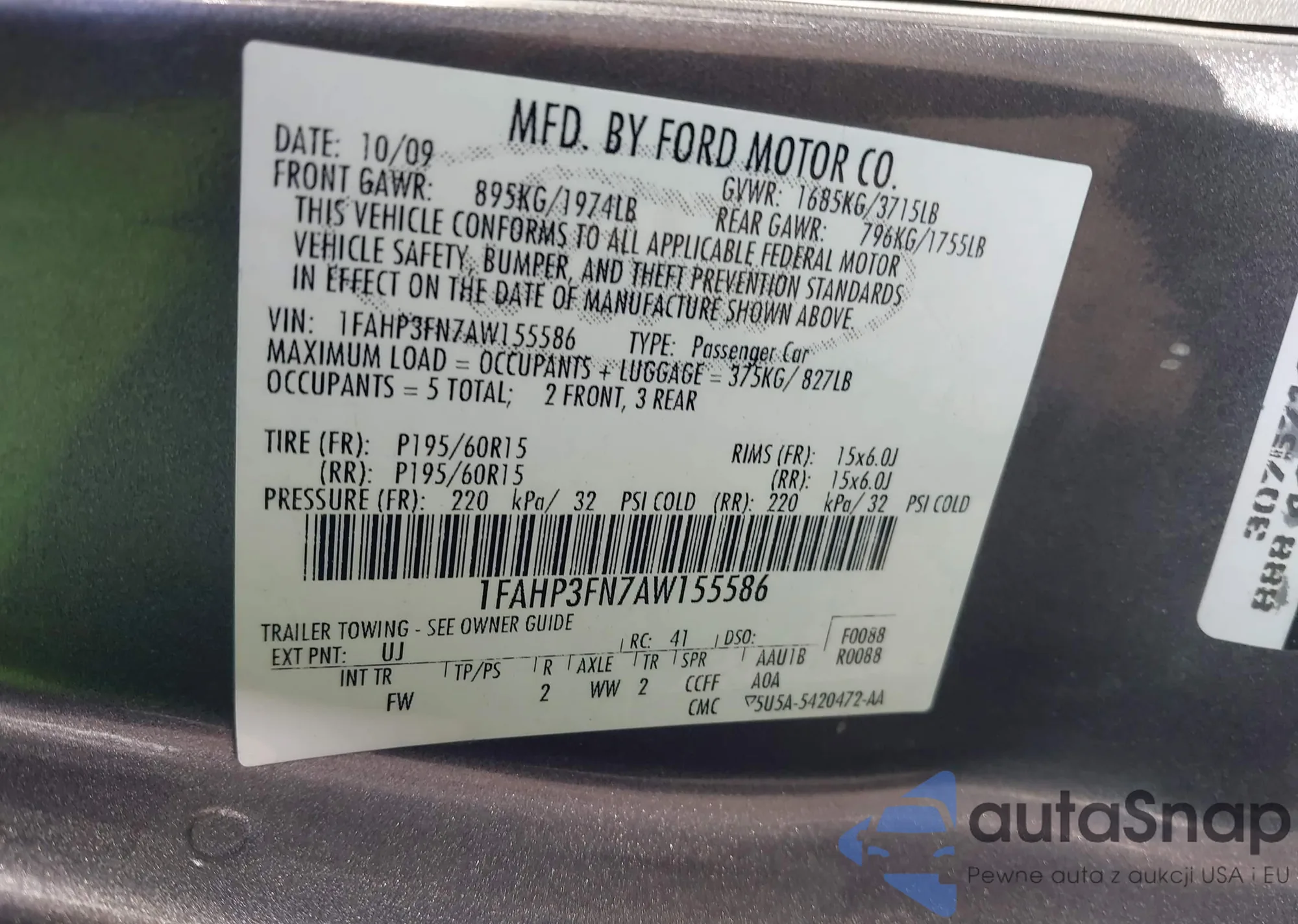 Samochód Ford Focus 2010 (VIN 1FAHP3FN7AW155586) nie był wcześniej licytowany. Dokumenty są czyste, przebieg odpowiada lub jest niższy niż średnia rynku. Sprzedaje go firma ubezpieczeniowa – polecamy zakup. Dostawa do portu zajmie ok. 6–8 tygodni.