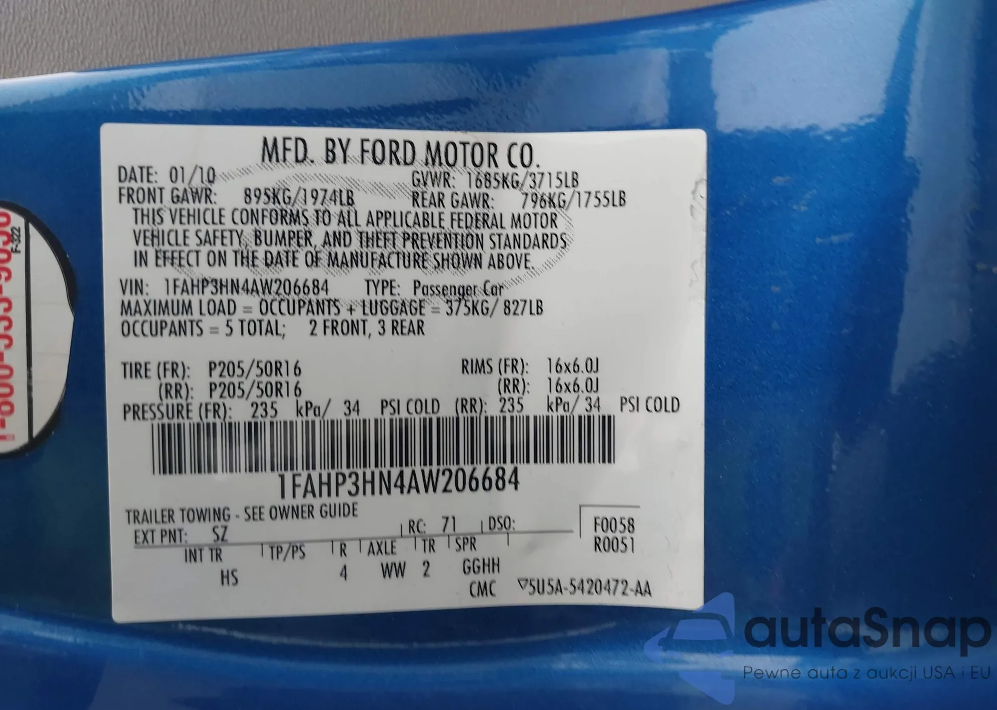 VIN: 1FAHP3HN4AW206684