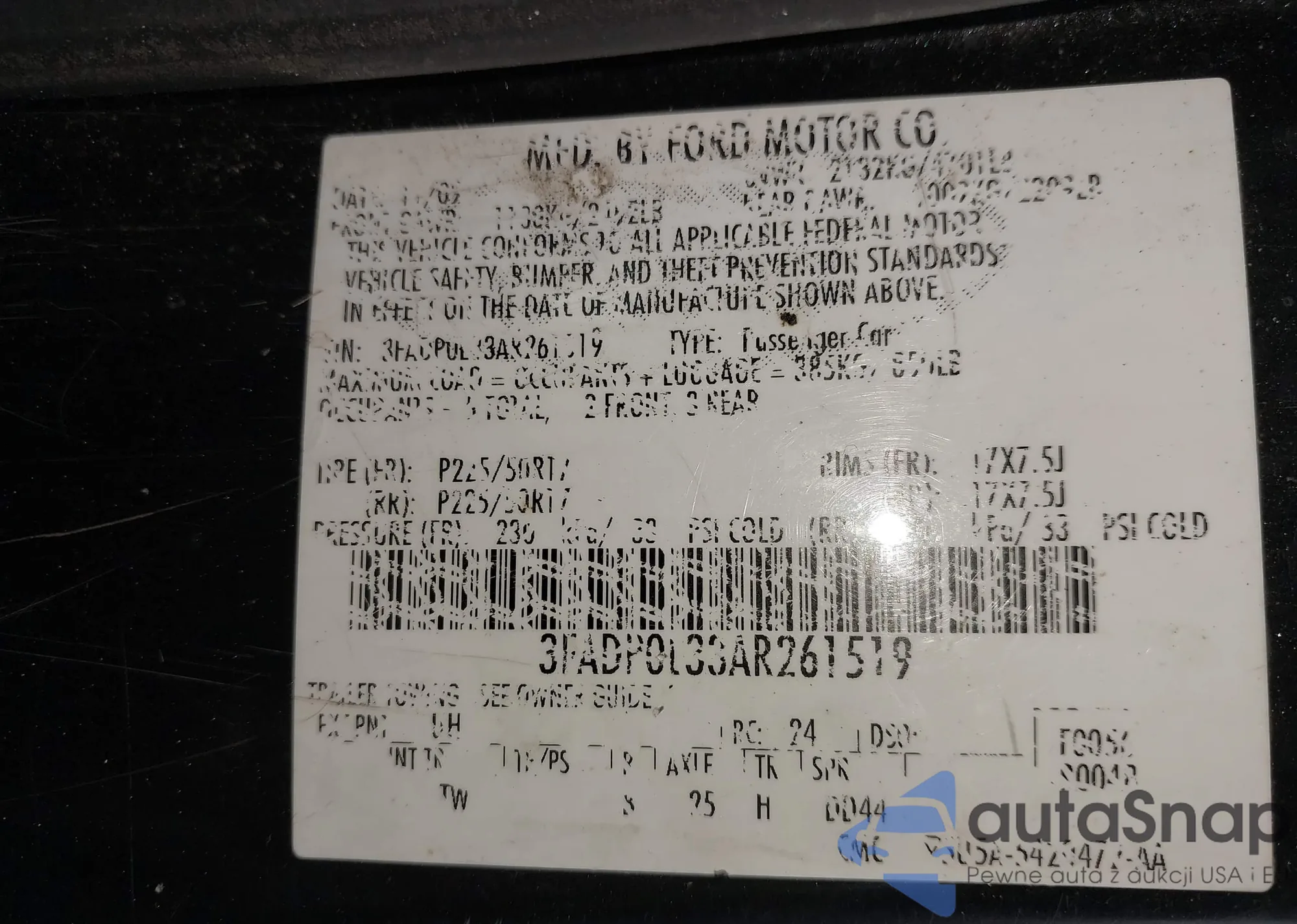 VIN: 3FADP0L33AR261519