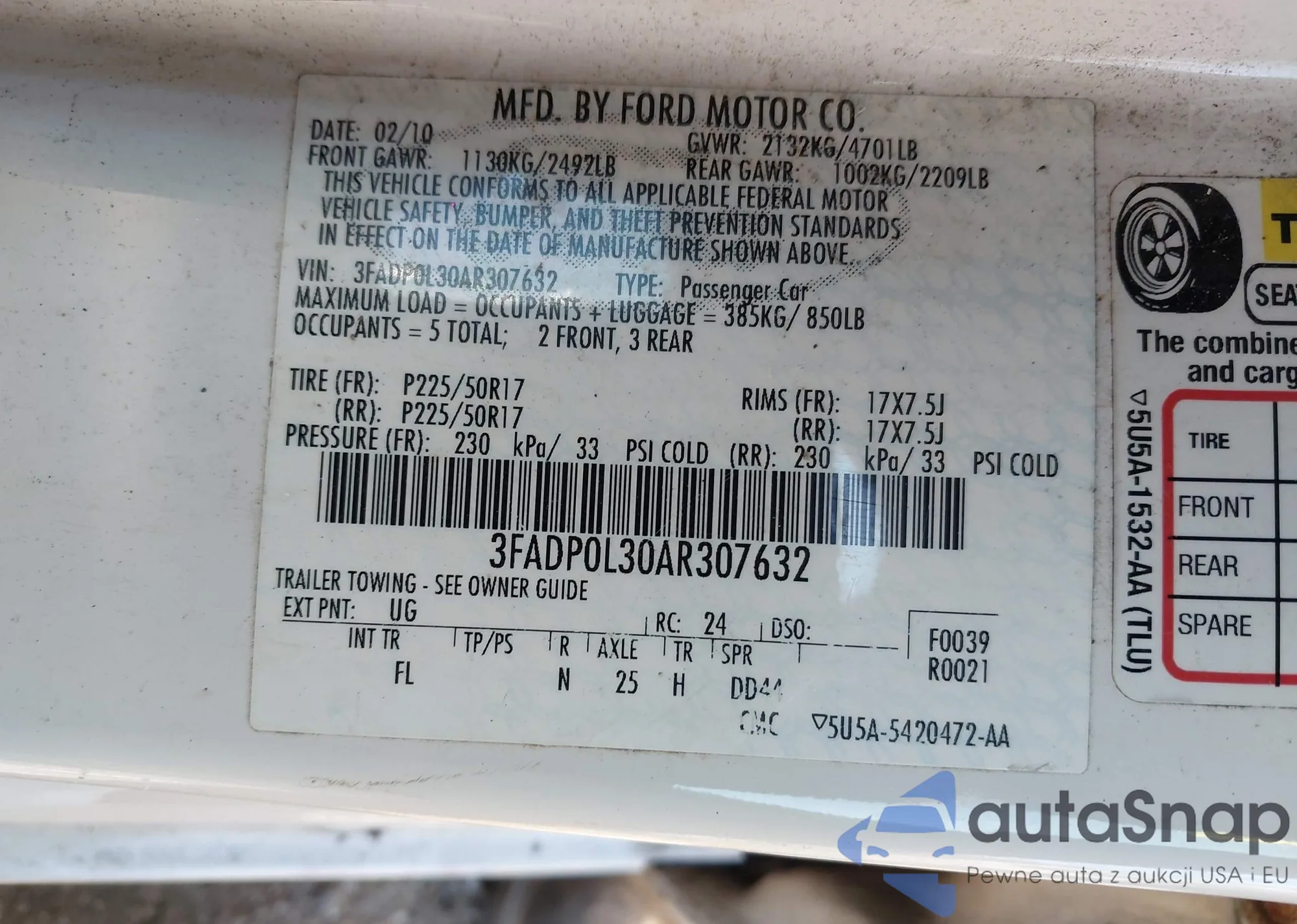 VIN: 3FADP0L30AR307632