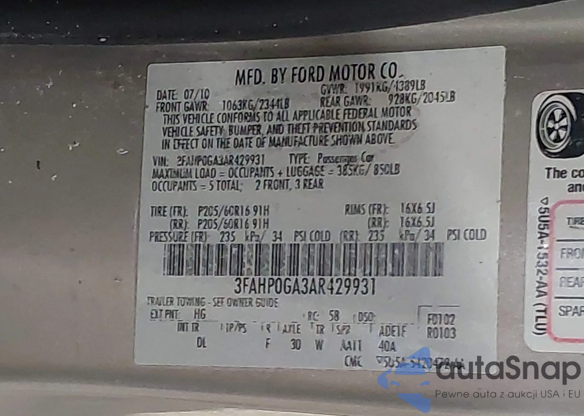 Samochód Ford Fusion 2010 (VIN 3FAHP0GA3AR429931) nie był wcześniej licytowany. Dokumenty są czyste, przebieg odpowiada lub jest niższy niż średnia rynku. Sprzedaje go firma ubezpieczeniowa – polecamy zakup. Dostawa do portu zajmie ok. 6–8 tygodni.