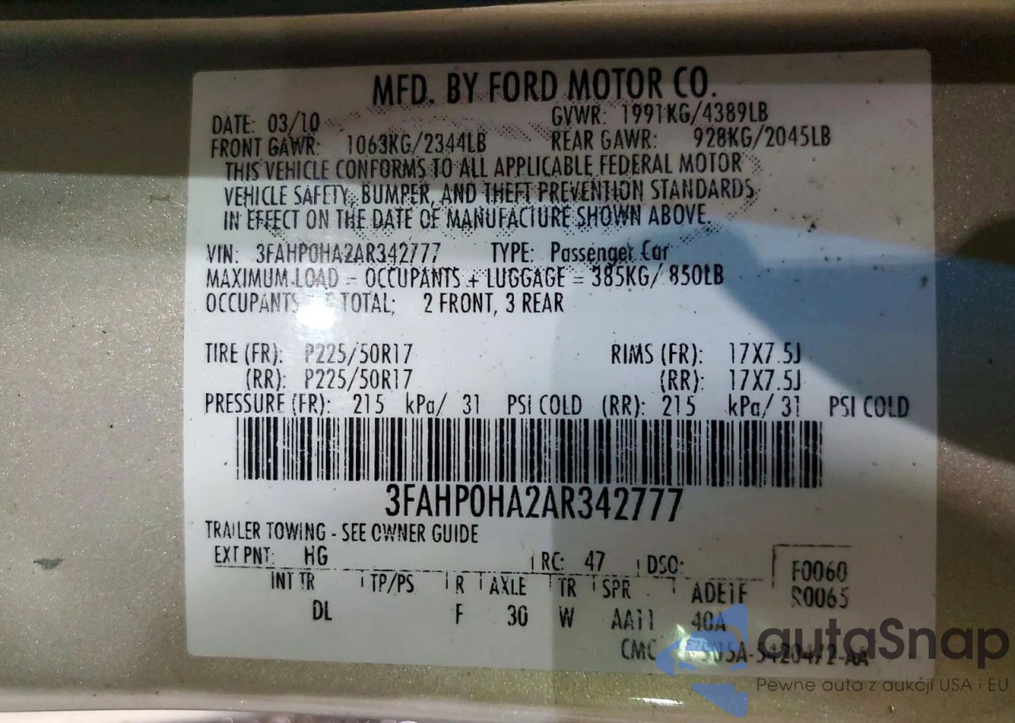 VIN: 3FAHP0HA2AR342777