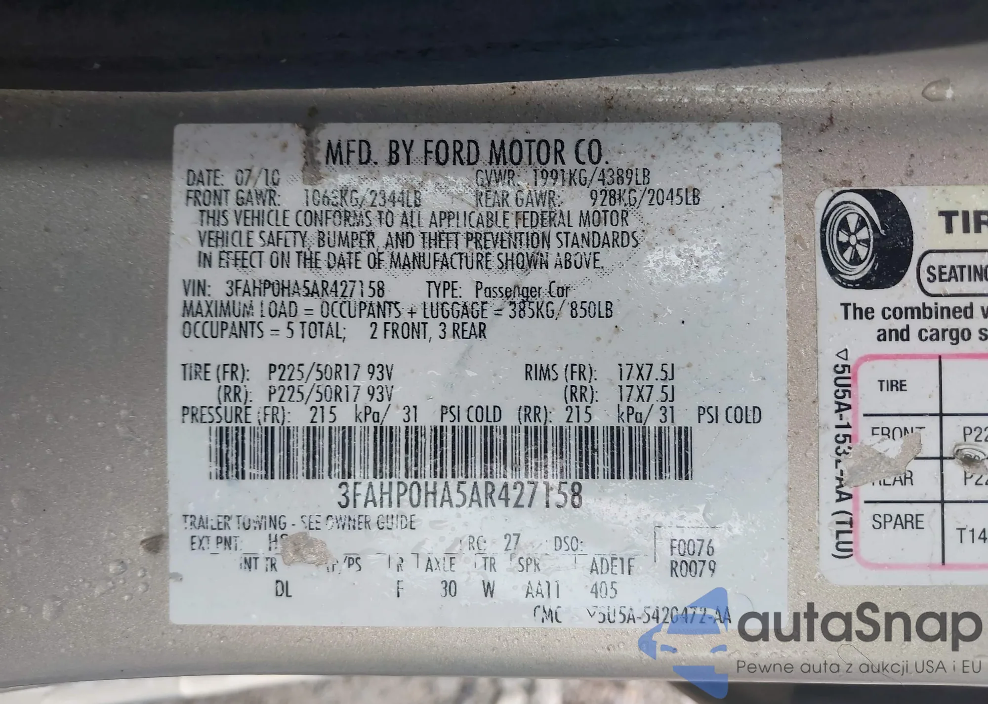 VIN: 3FAHP0HA5AR427158