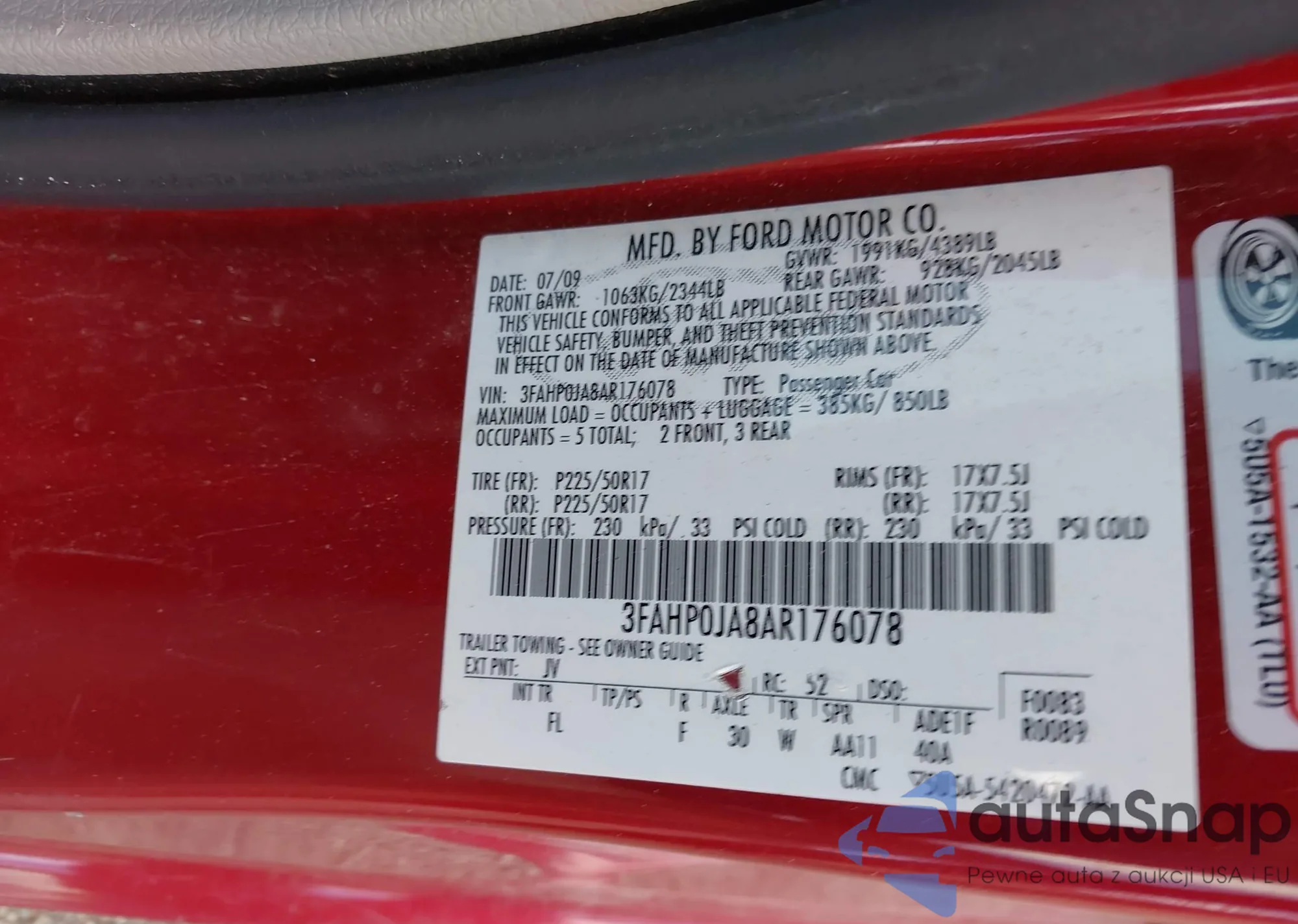 VIN: 3FAHP0JA8AR176078