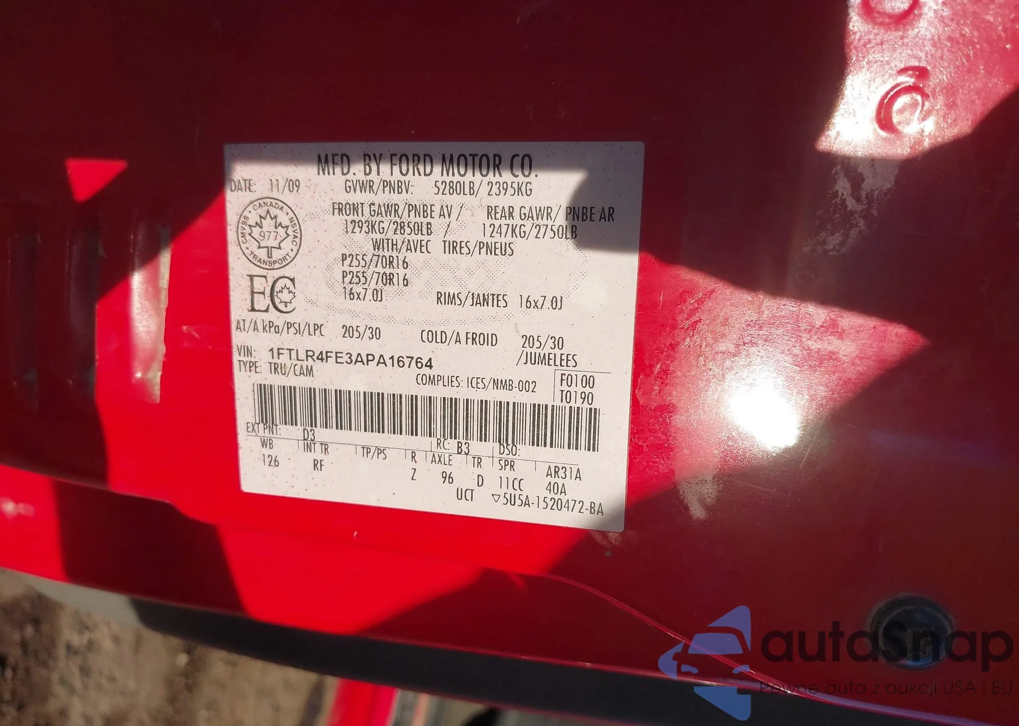 VIN: 1FTLR4FE3APA16764