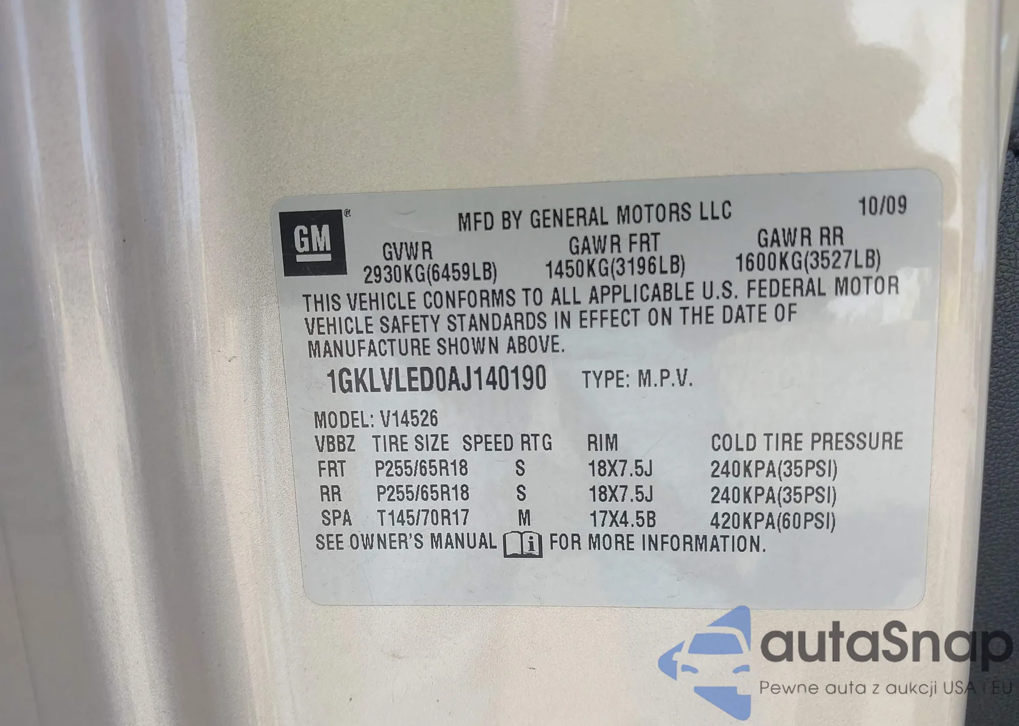 VIN: 1GKLVLED0AJ140190