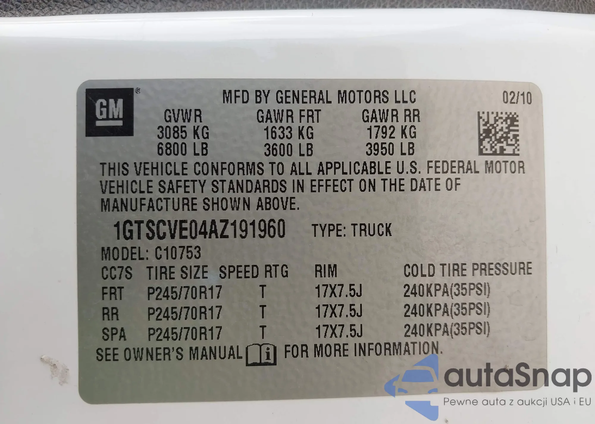 Samochód GMC Sierra 2010 (VIN 1GTSCVE04AZ191960) nie był wcześniej licytowany. Dokumenty są czyste, przebieg odpowiada lub jest niższy niż średnia rynku. Sprzedaje go firma ubezpieczeniowa – polecamy zakup. Dostawa do portu zajmie ok. 6–8 tygodni.