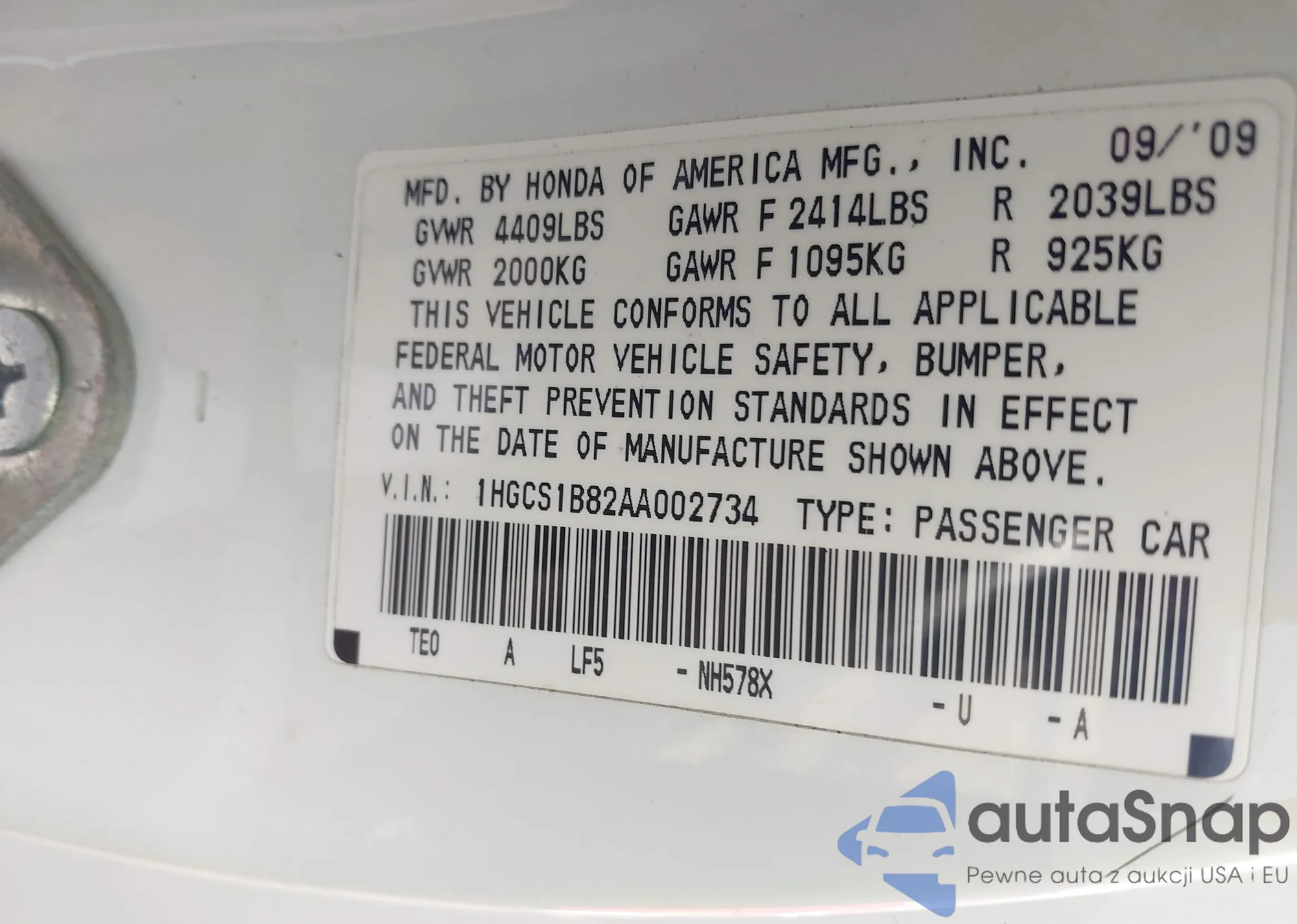 VIN: 1HGCS1B82AA002734