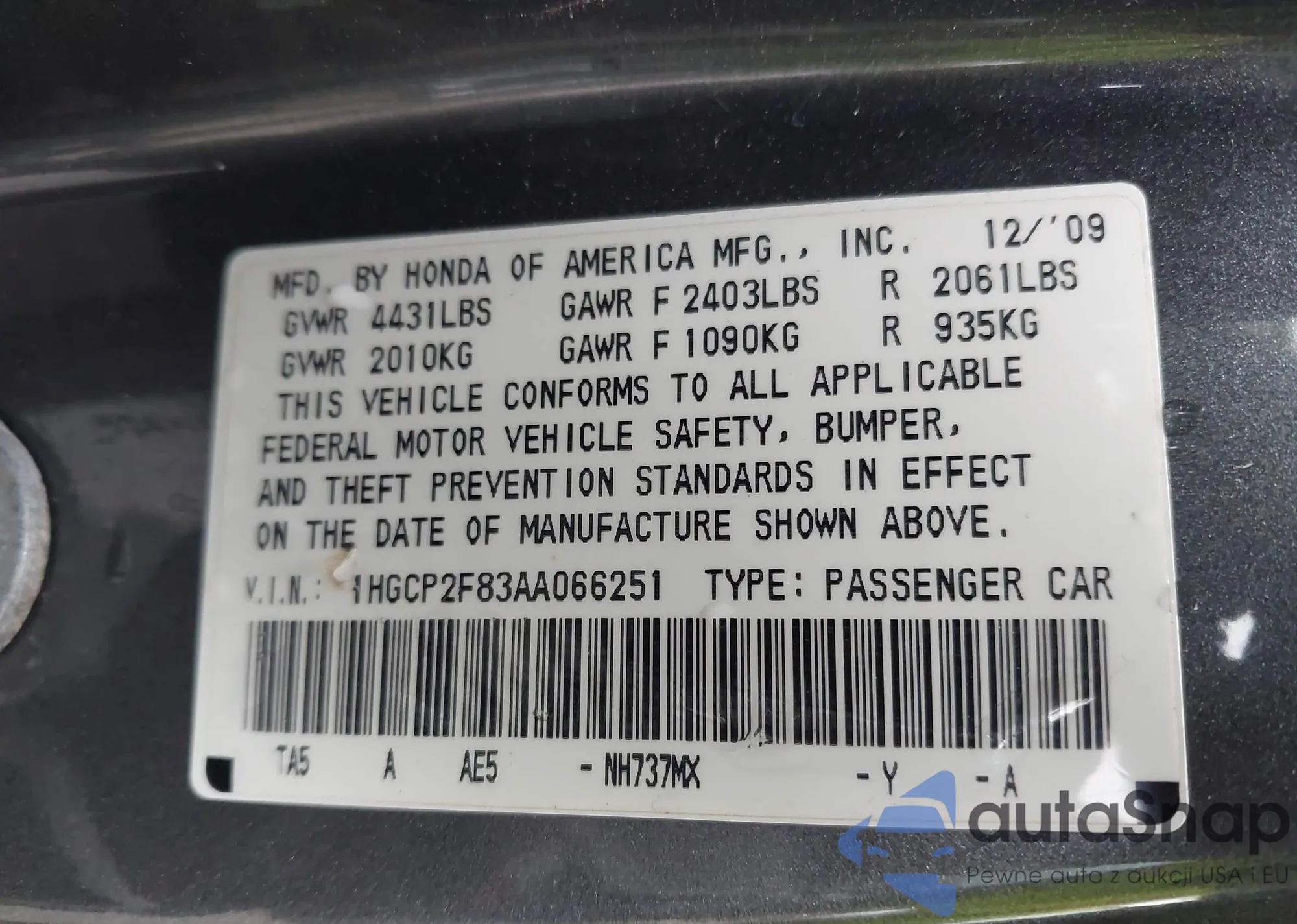 VIN: 1HGCP2F83AA066251
