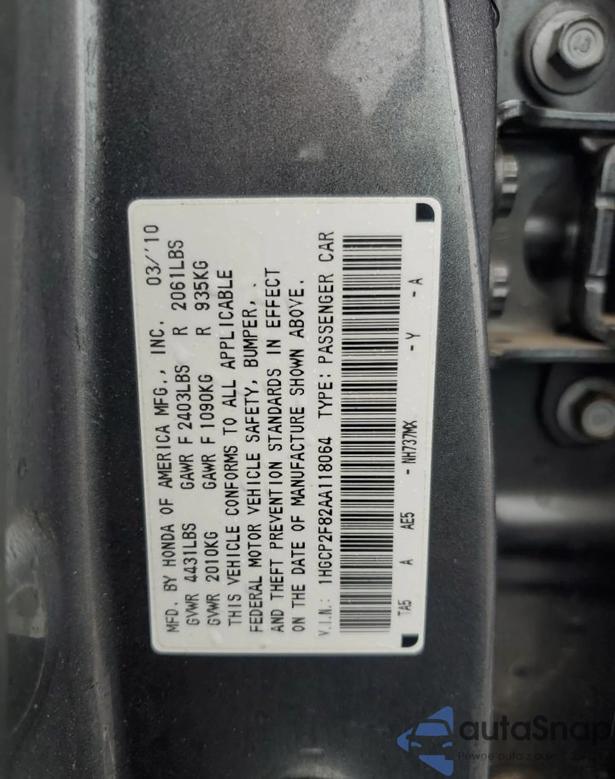 VIN: 1HGCP2F82AA118064