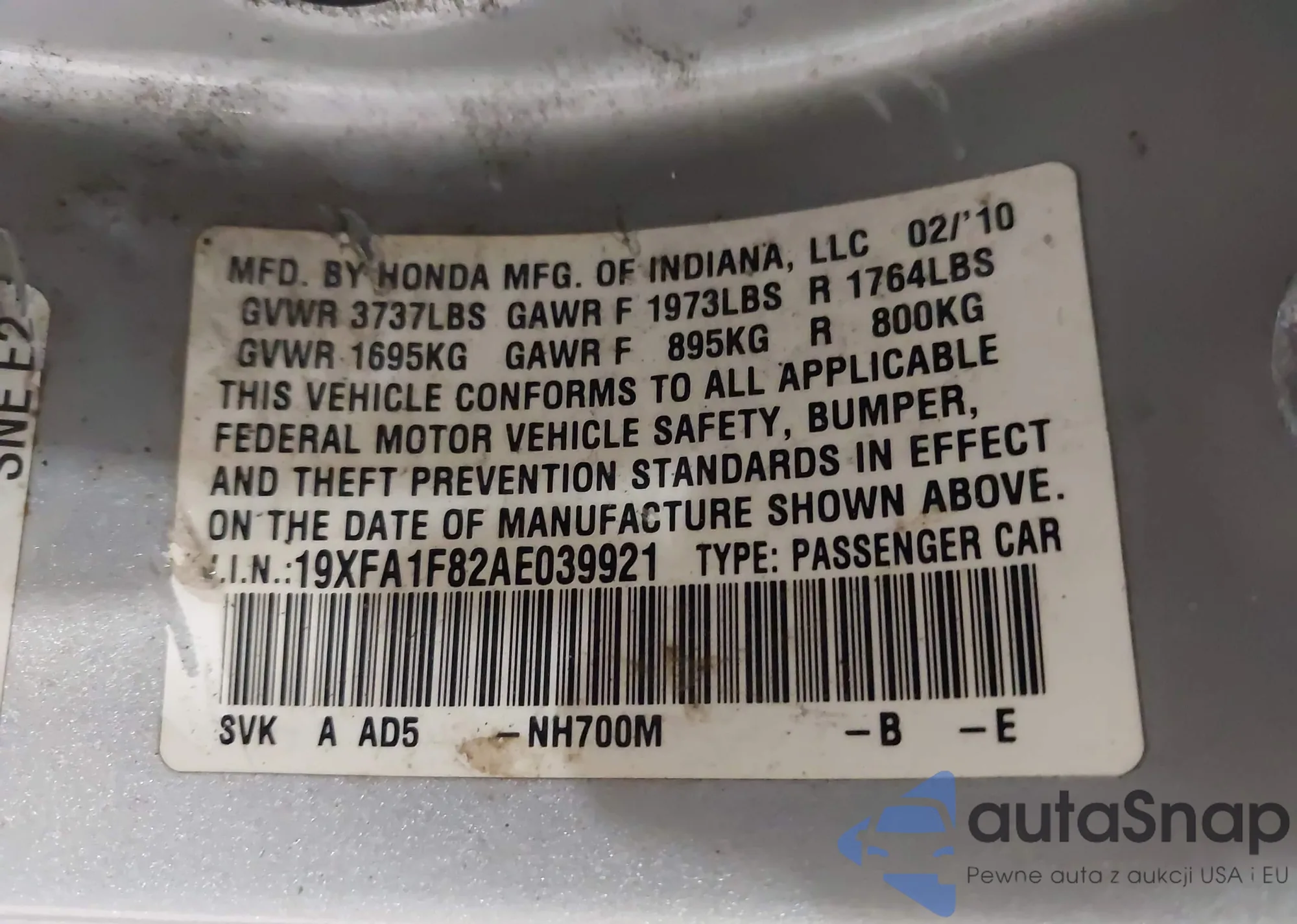 VIN: 19XFA1F82AE039921