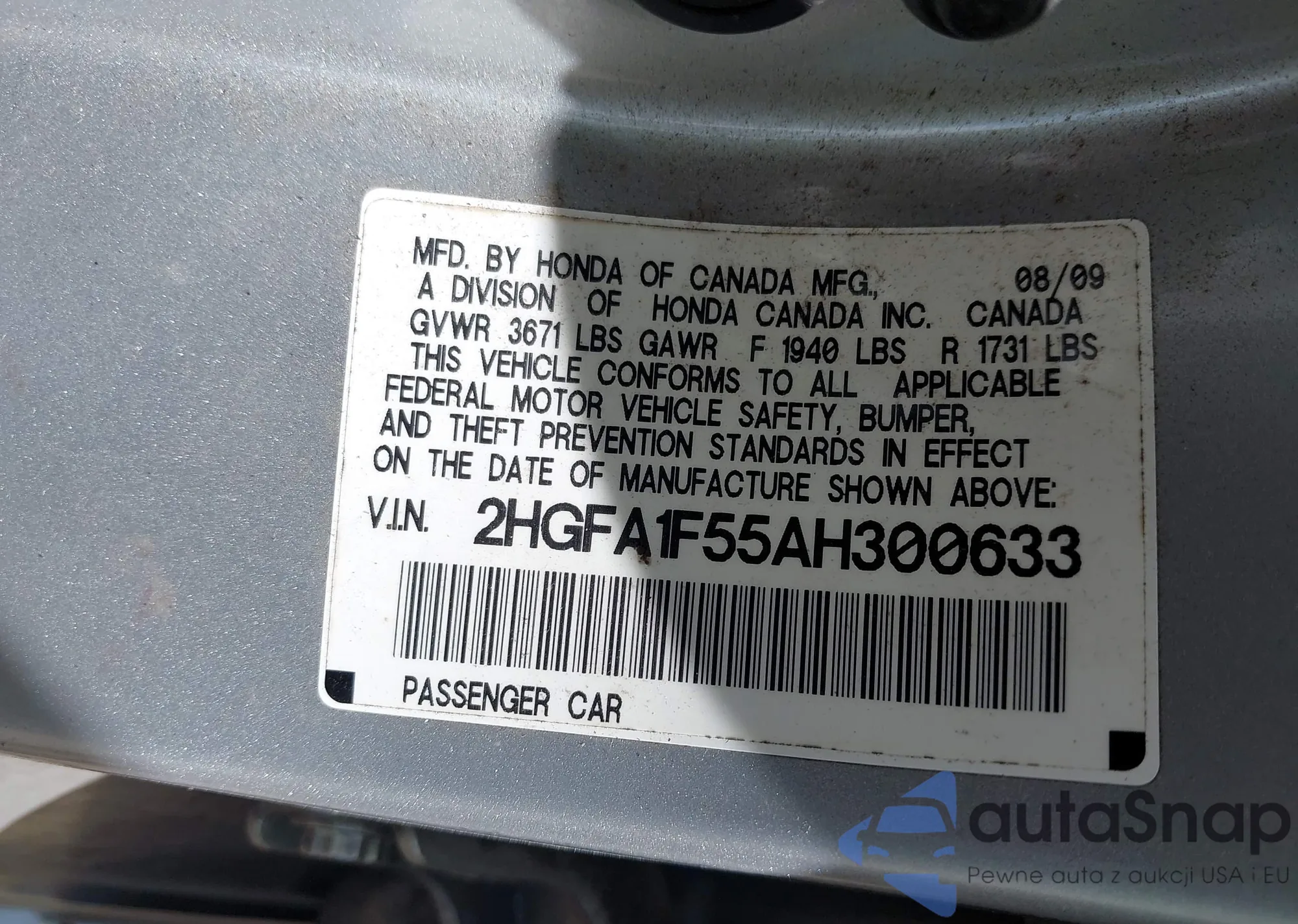 • VIN: 2HGFA1F55AH300633
