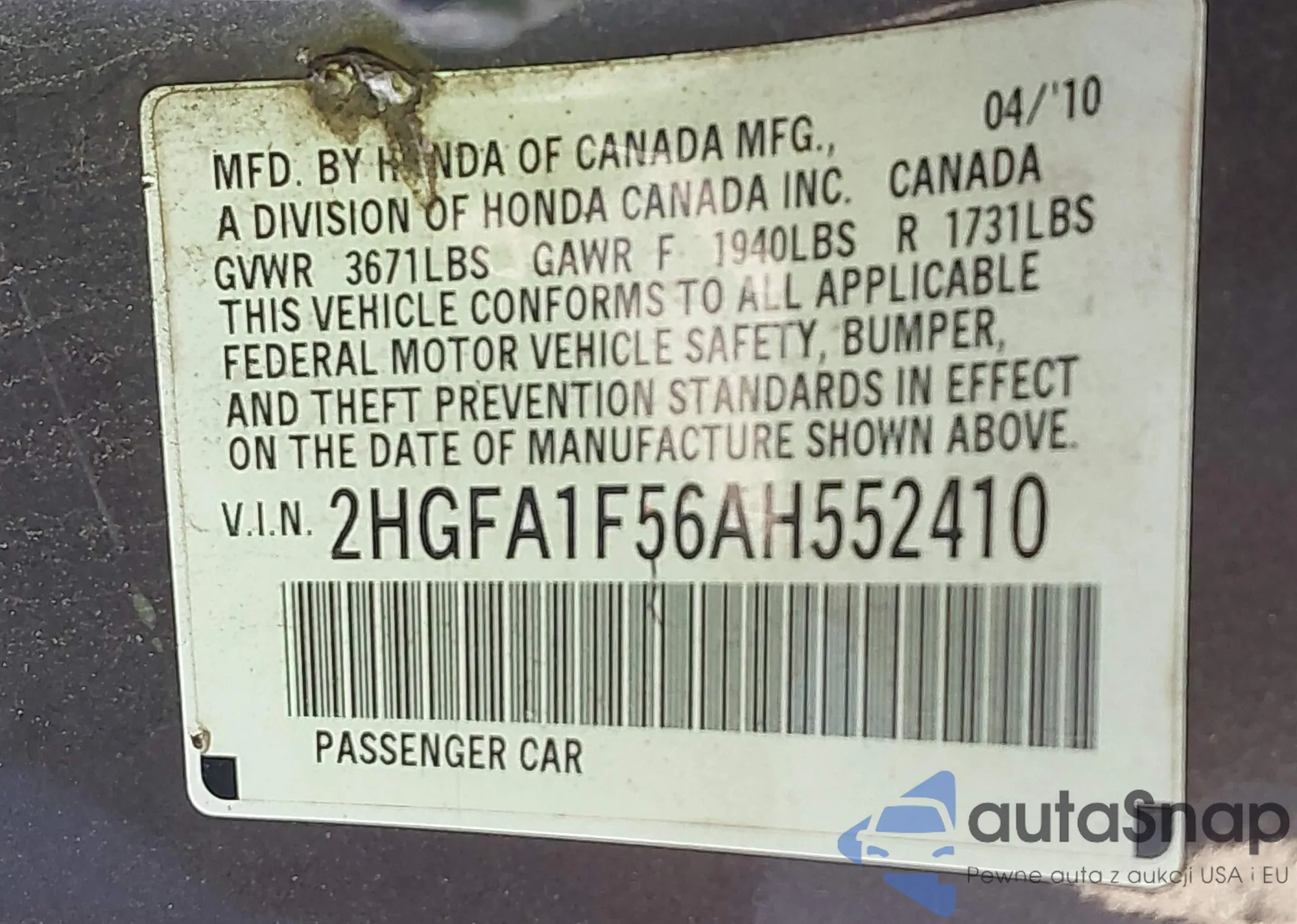 VIN: 2HGFA1F56AH552410