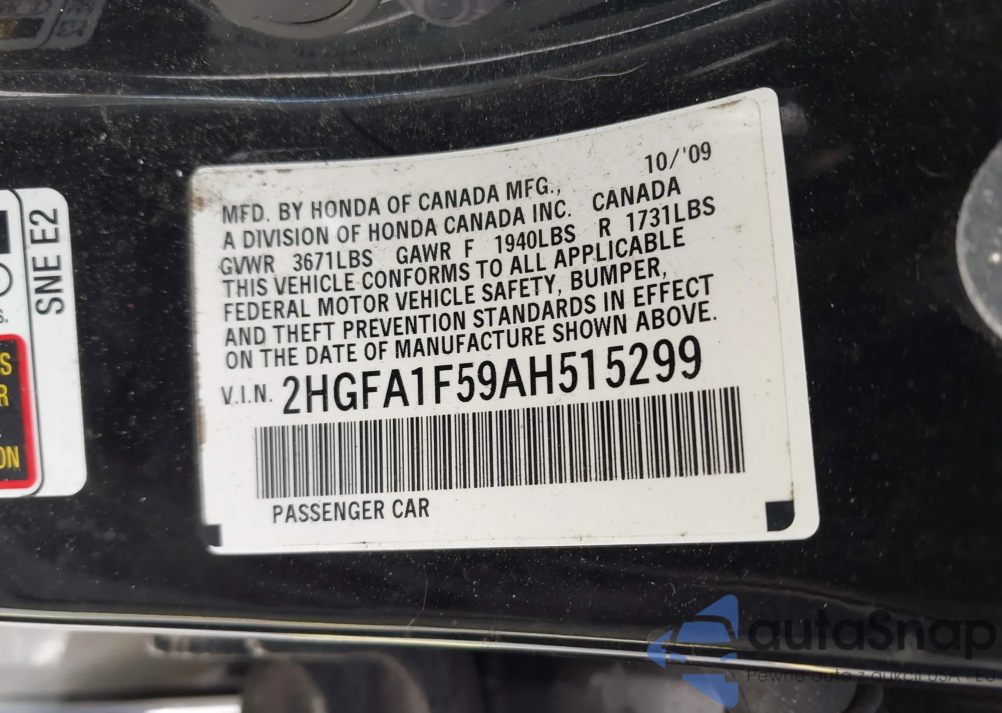 VIN: 2HGFA1F59AH515299