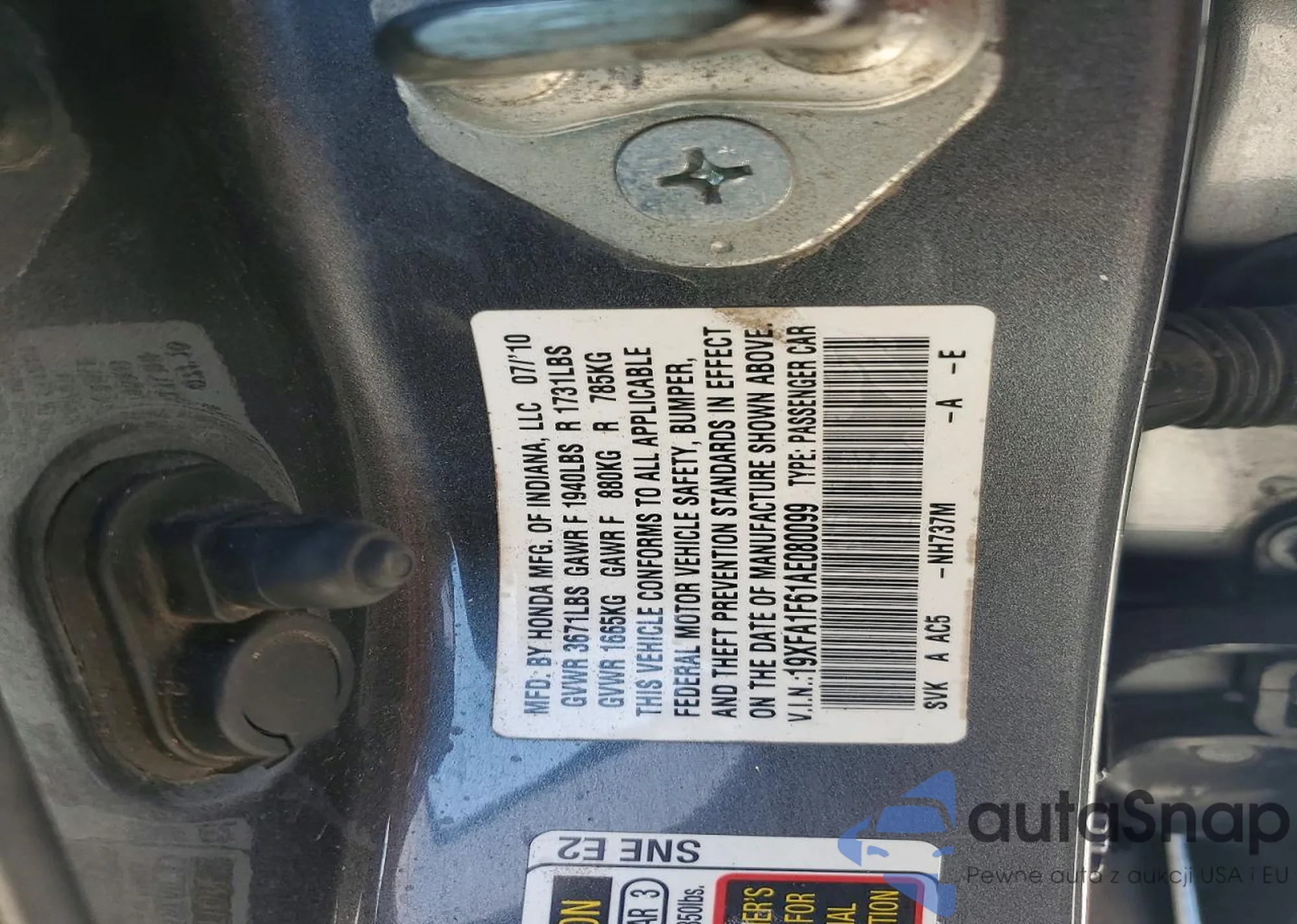 Samochód Honda Civic 2010 (VIN 19XFA1F61AE080099) nie był wcześniej licytowany. Dokumenty są czyste, przebieg odpowiada lub jest niższy niż średnia rynku. Sprzedaje go firma ubezpieczeniowa – polecamy zakup. Dostawa do portu zajmie ok. 6–8 tygodni.