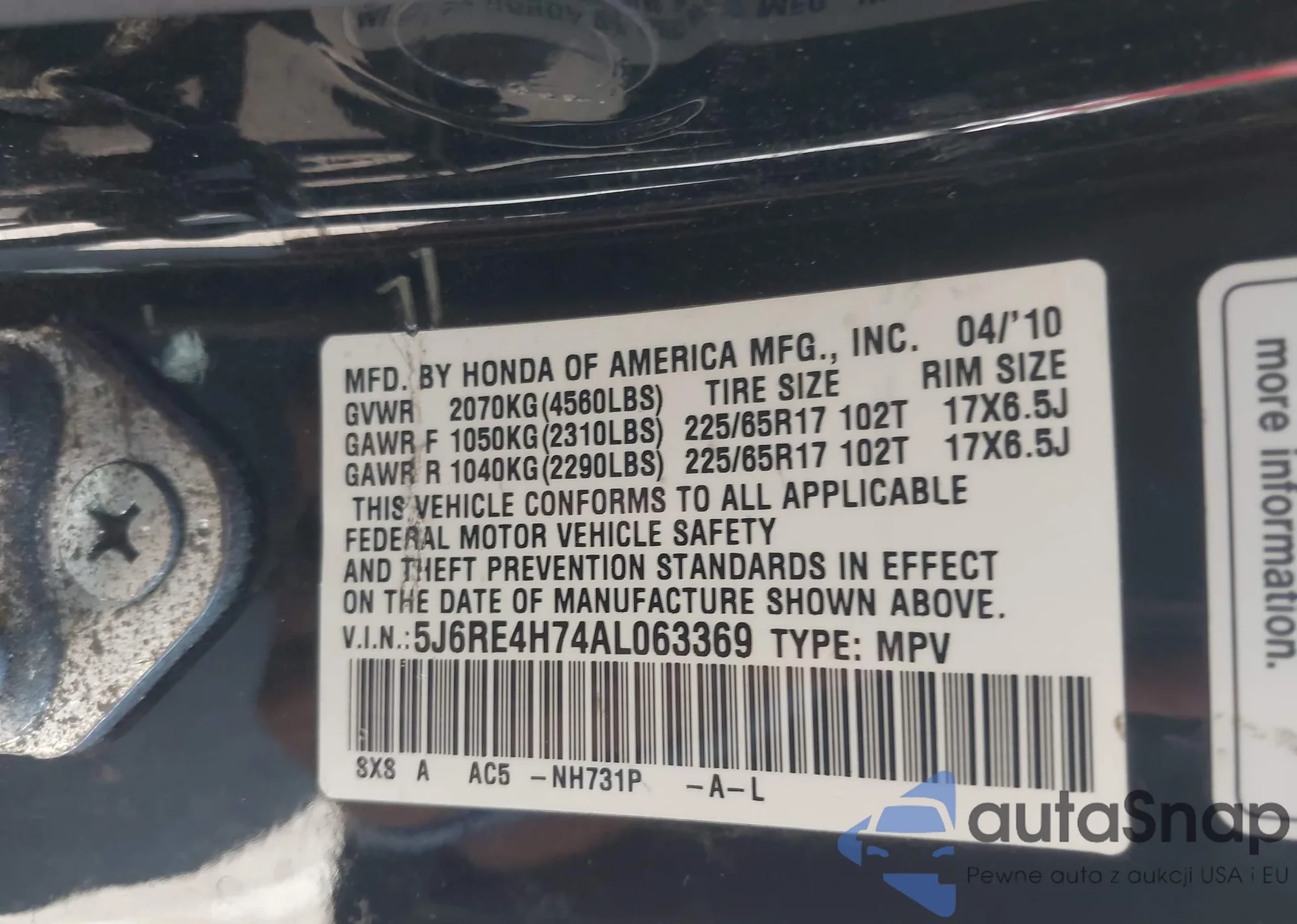VIN: 5J6RE4H74AL063369