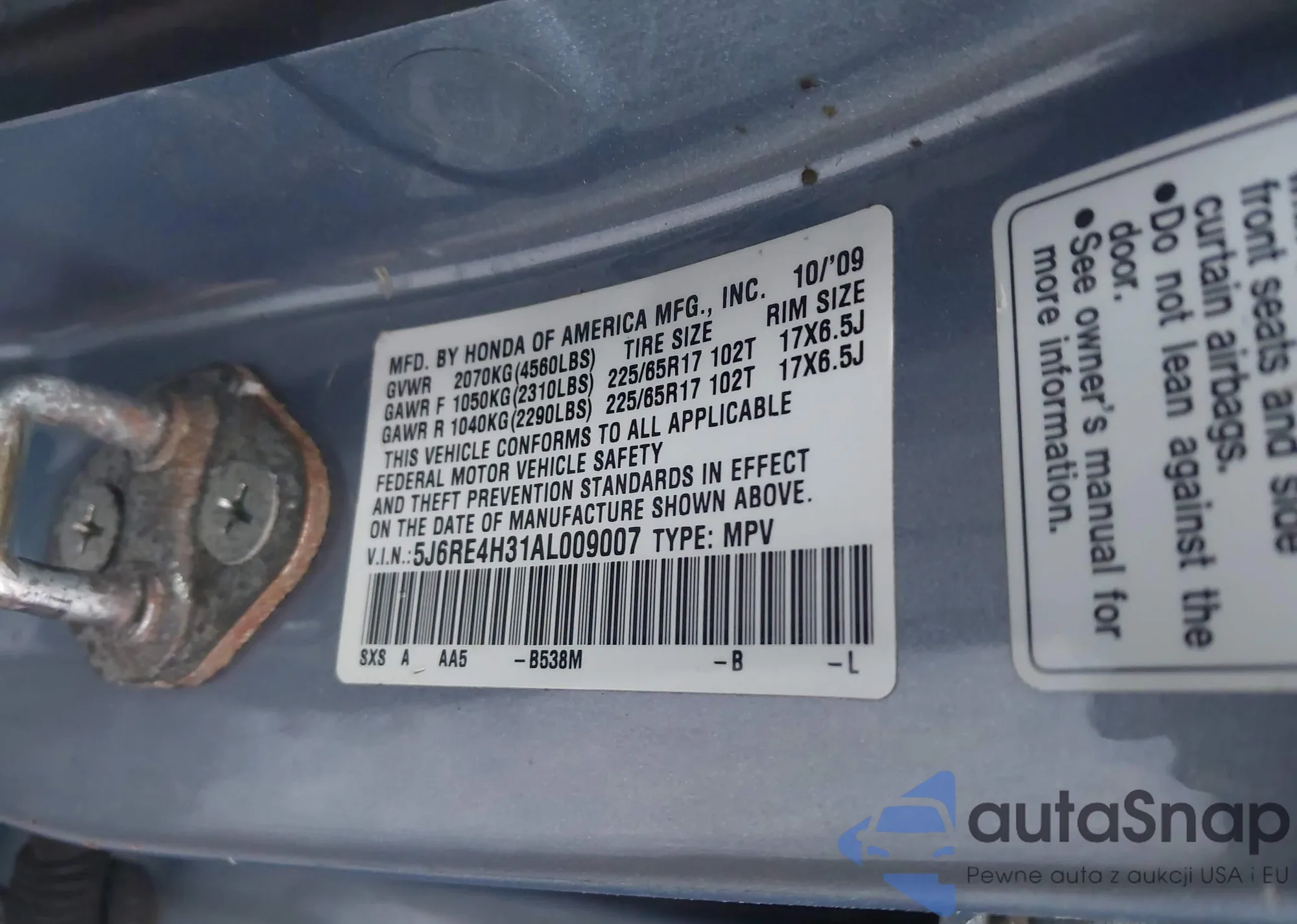 VIN: 5J6RE4H31AL009007