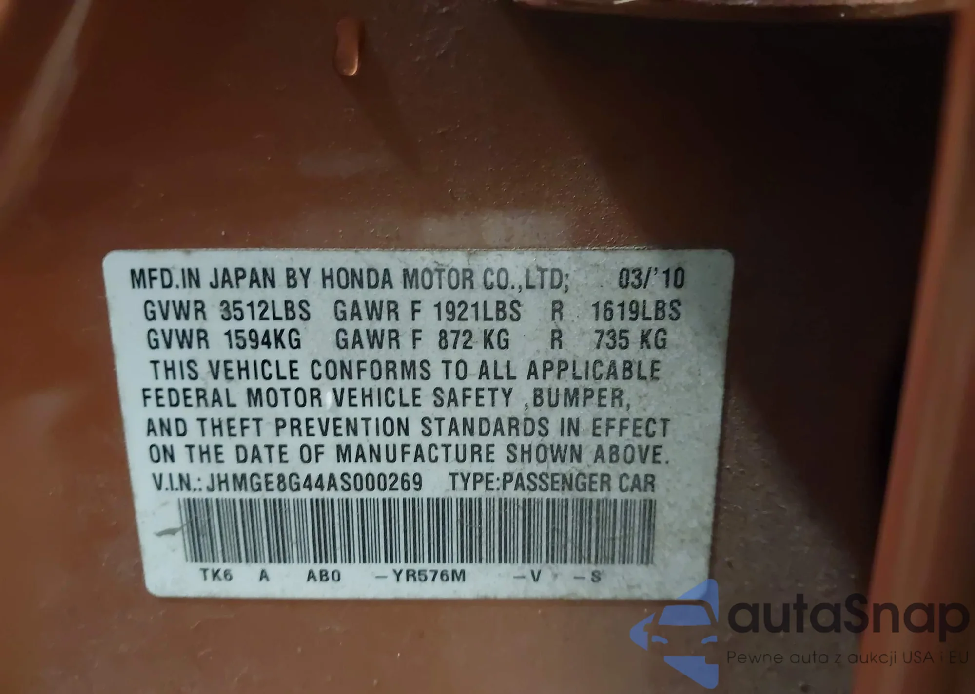 VIN: JHMGE8G44AS000269