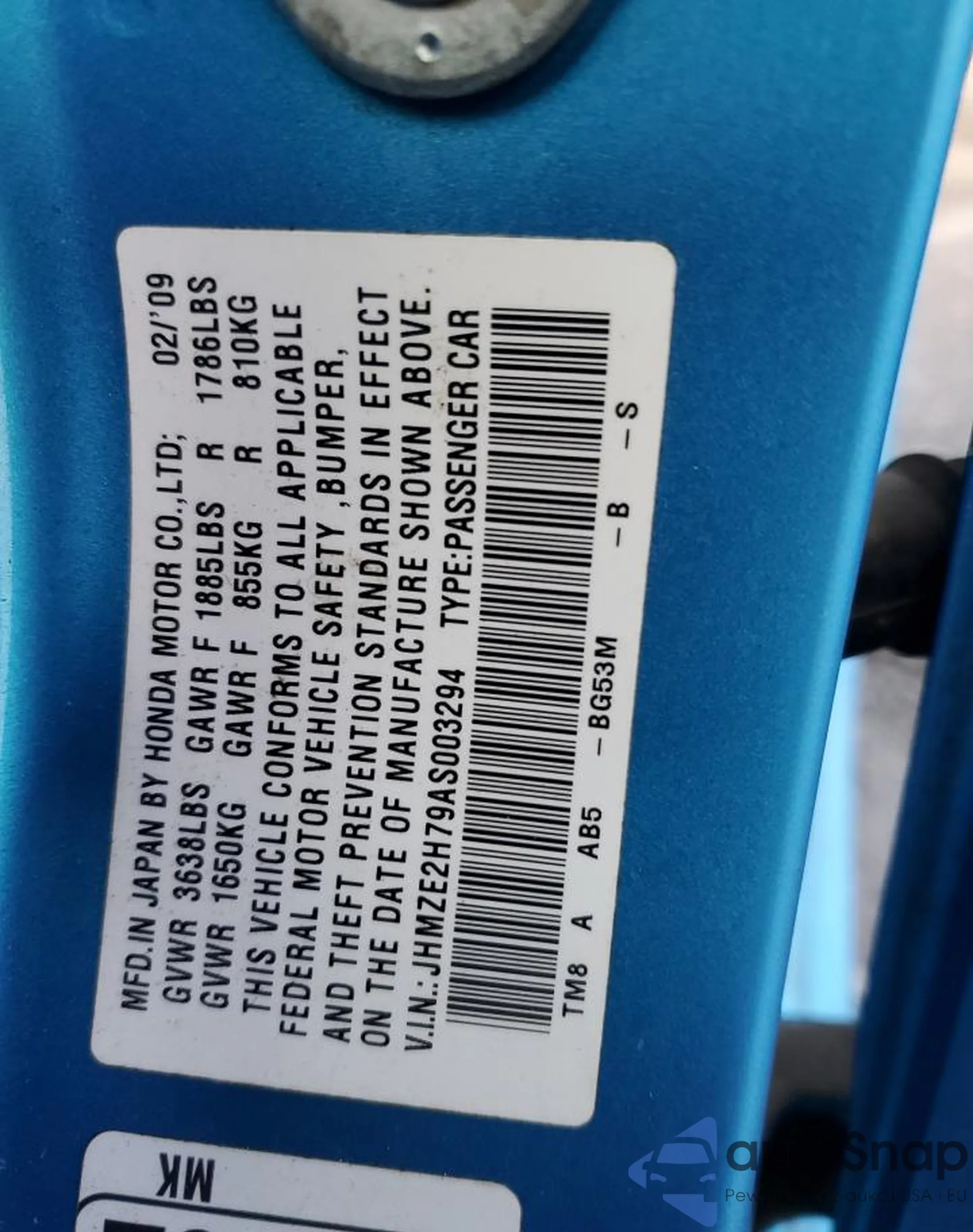 Samochód Honda Insight 2010 (VIN JHMZE2H79AS003294) ma dokumenty uniemożliwiające rejestrację. Mogą pojawić się trudności przy eksporcie i rejestracji. Skontaktuj się z ekspertami AutaSnap w celu znalezienia alternatywy.