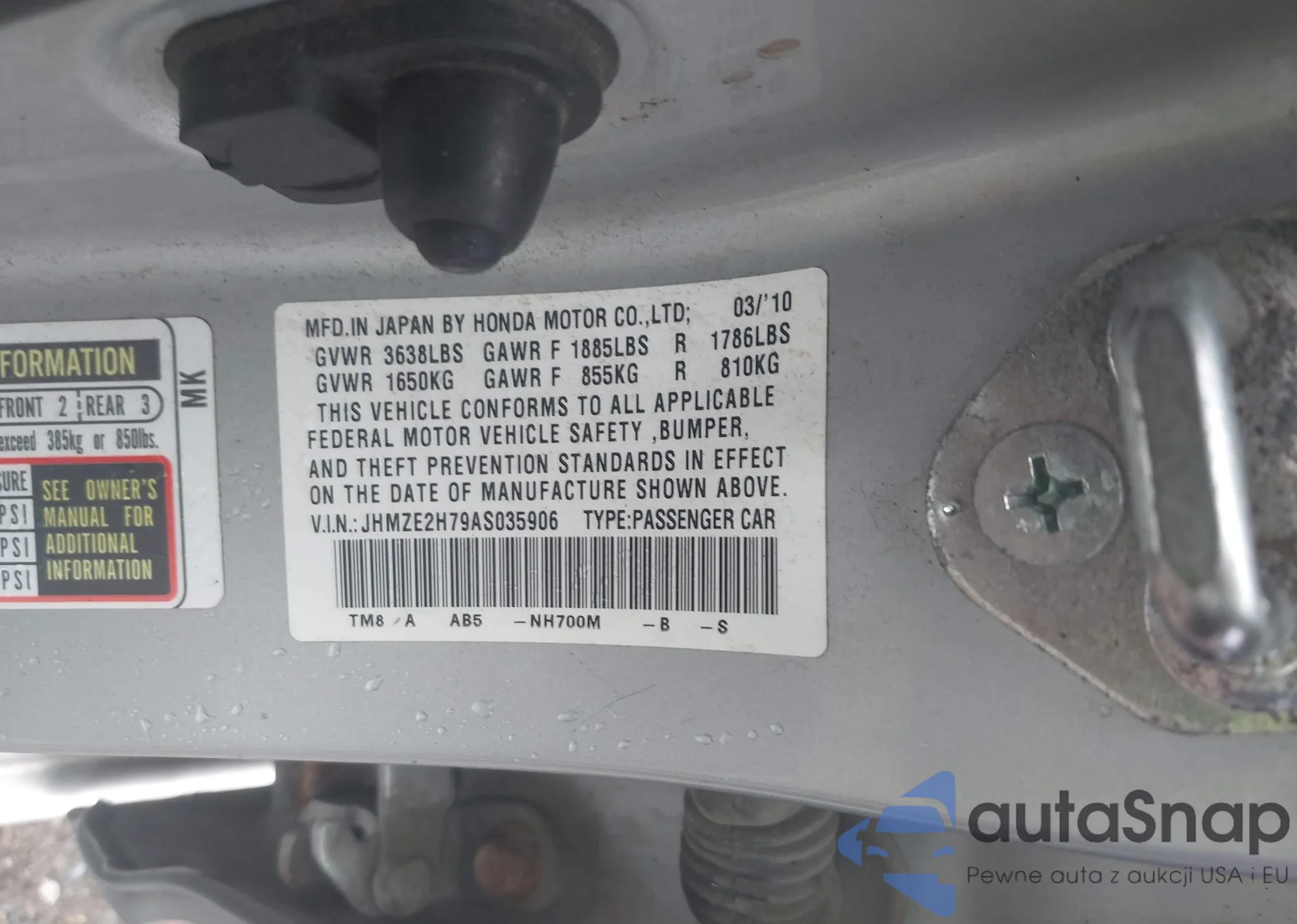 VIN: JHMZE2H79AS035906