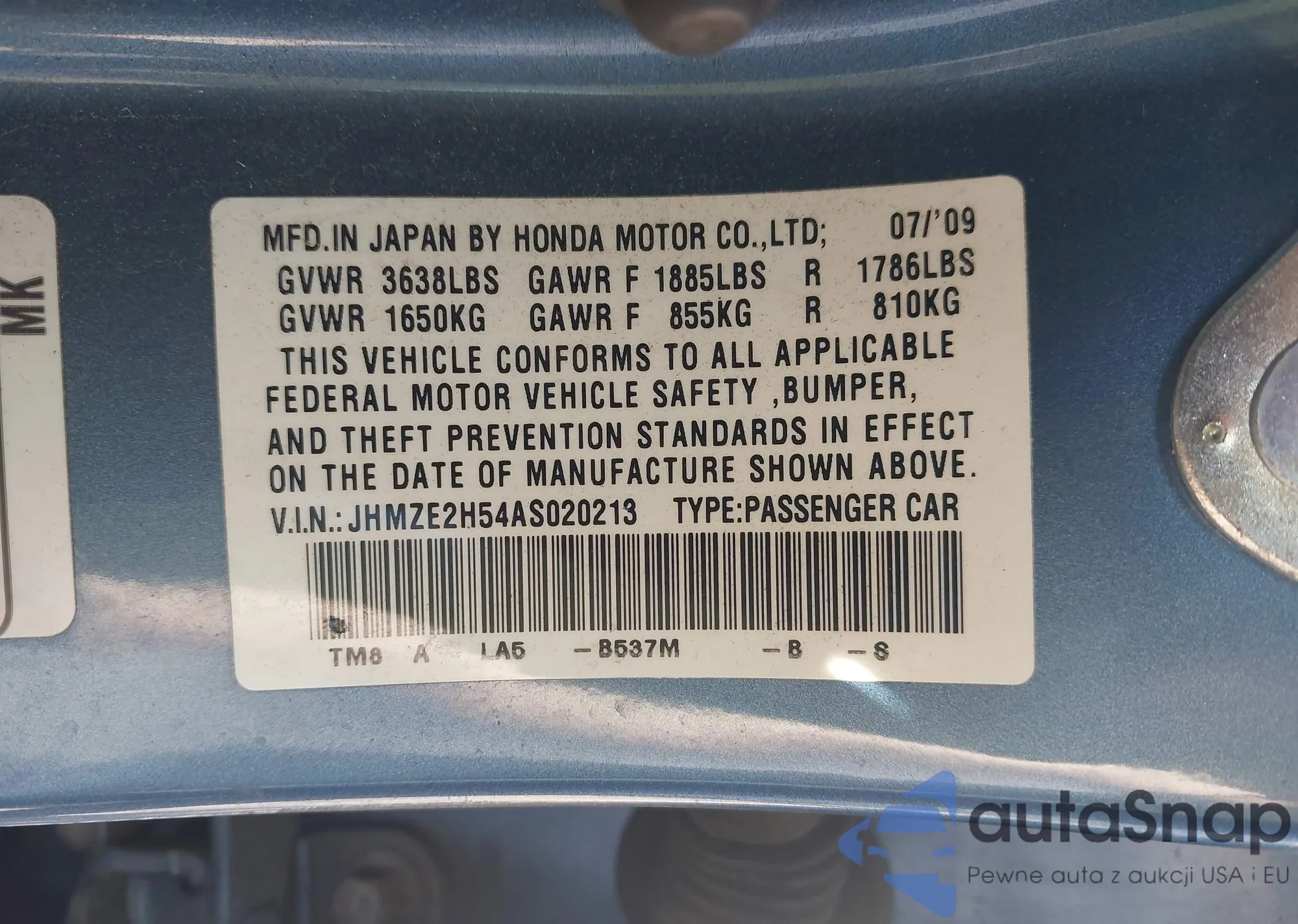 VIN: JHMZE2H54AS020213