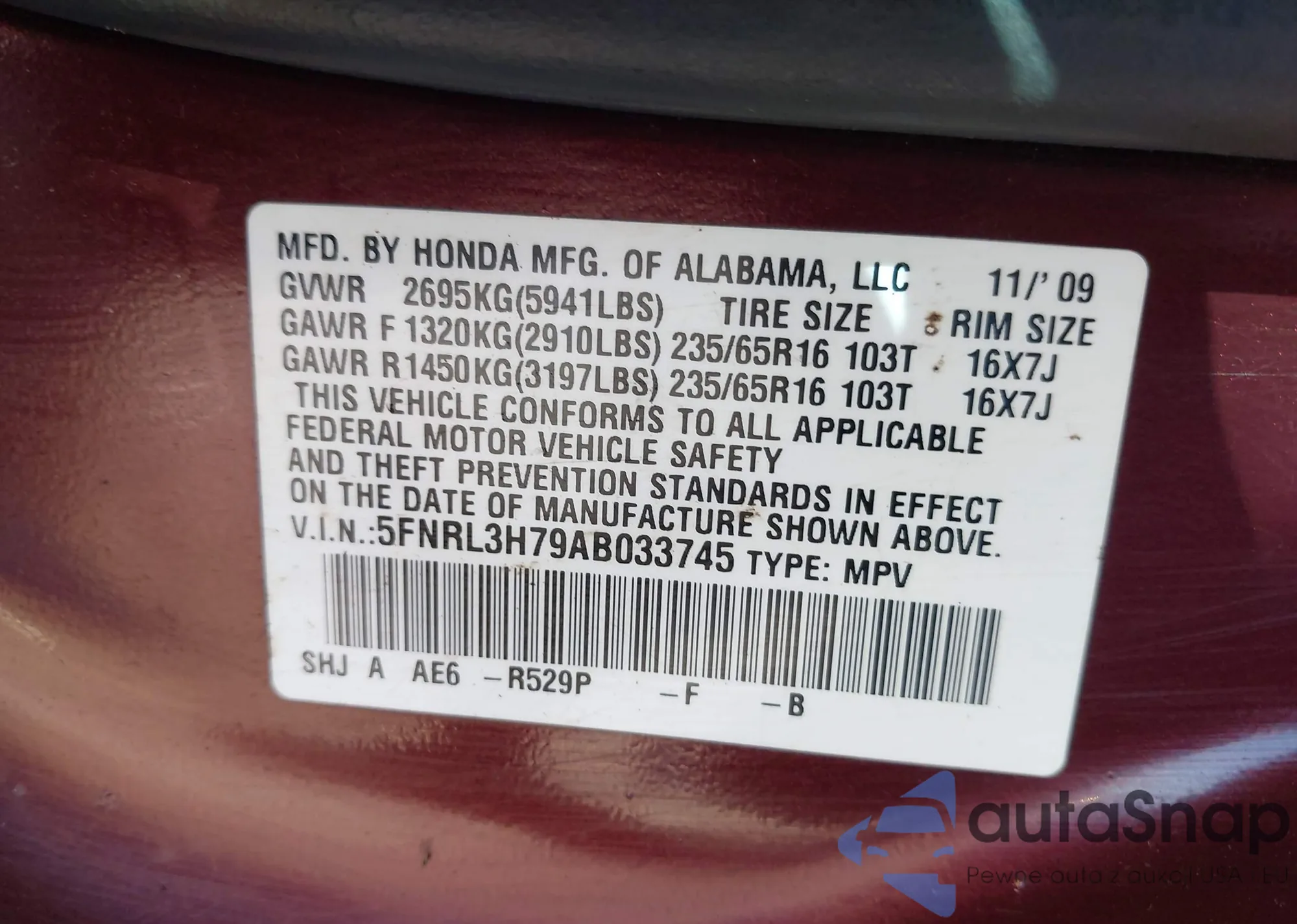 VIN: 5FNRL3H79AB033745