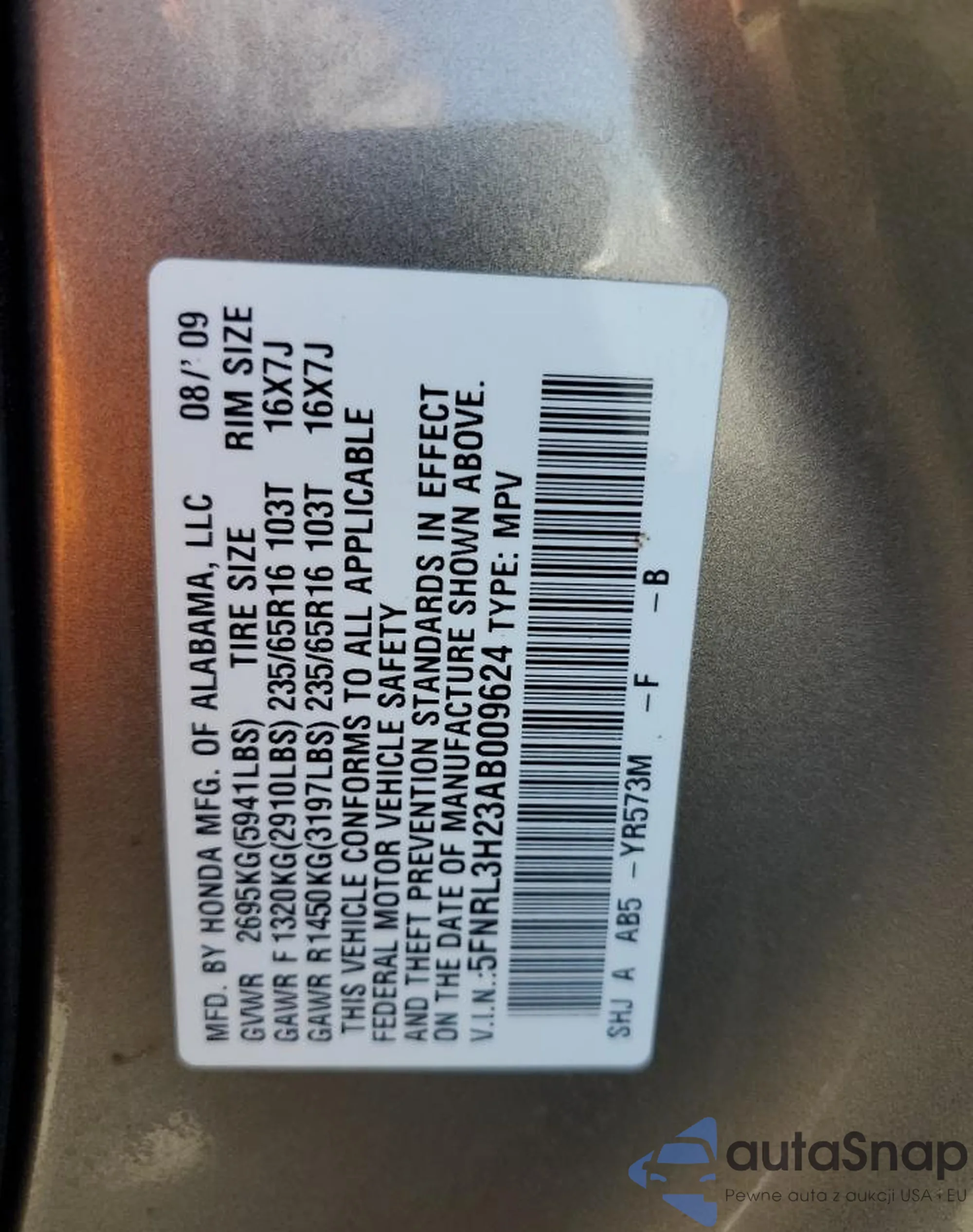 VIN: 5FNRL3H23AB300962