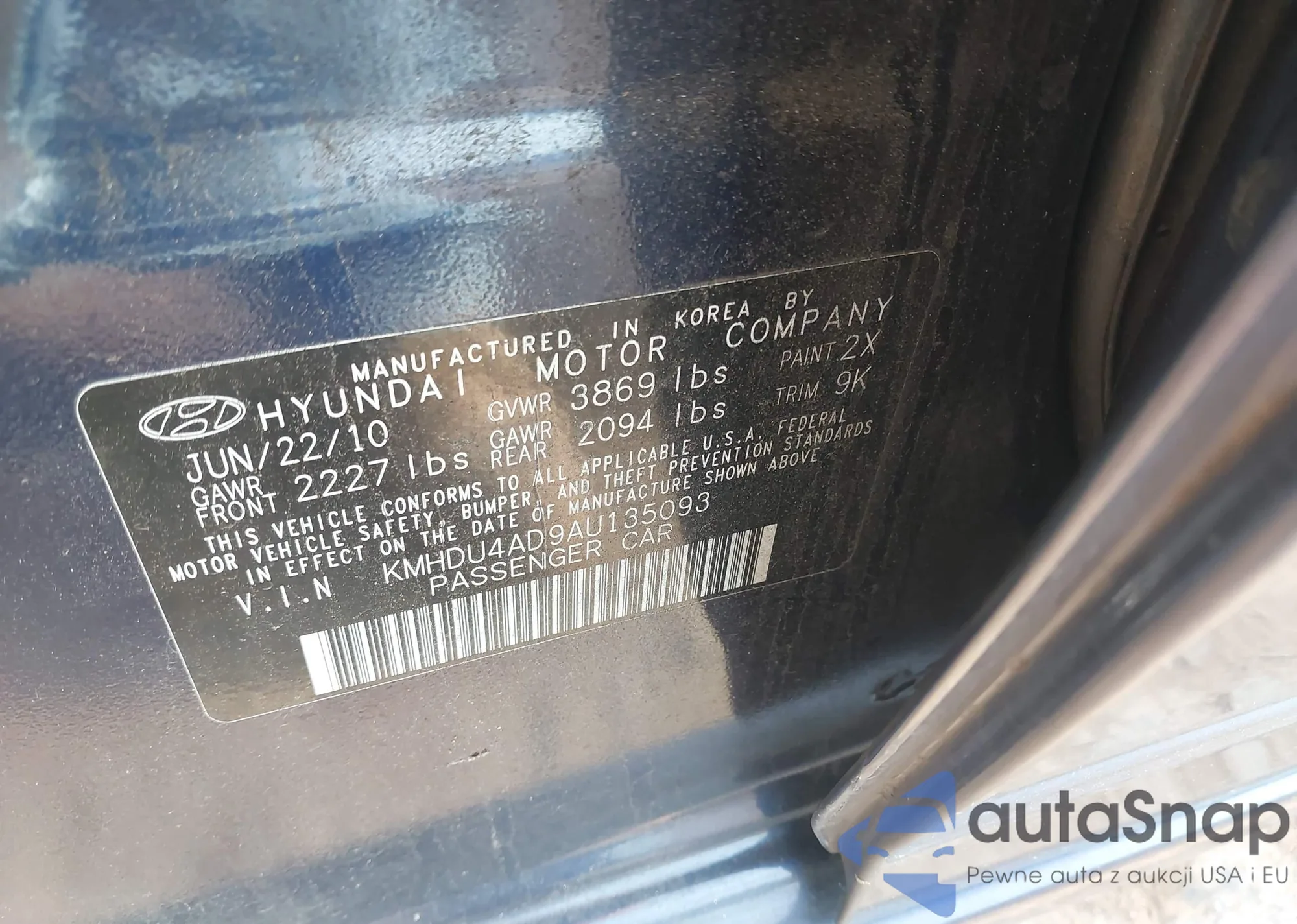 VIN: KMHDU4AD9AU135093