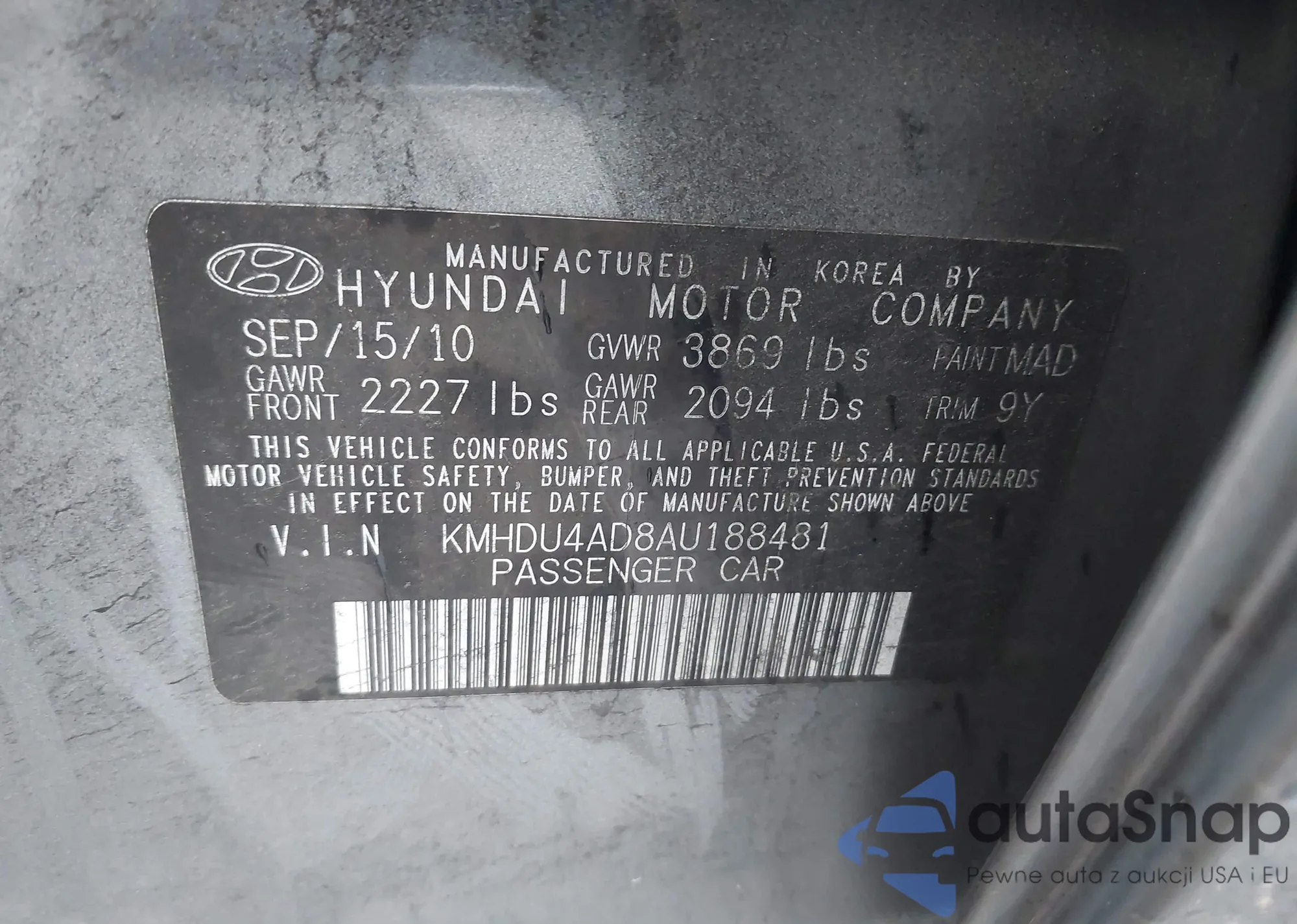 Samochód Hyundai Elantra 2010 (VIN KMHDU4AD8AU188481) nie był wcześniej licytowany. Dokumenty są czyste, przebieg odpowiada lub jest niższy niż średnia rynku. Sprzedaje go firma ubezpieczeniowa – polecamy zakup. Dostawa do portu zajmie ok. 6–8 tygodni.