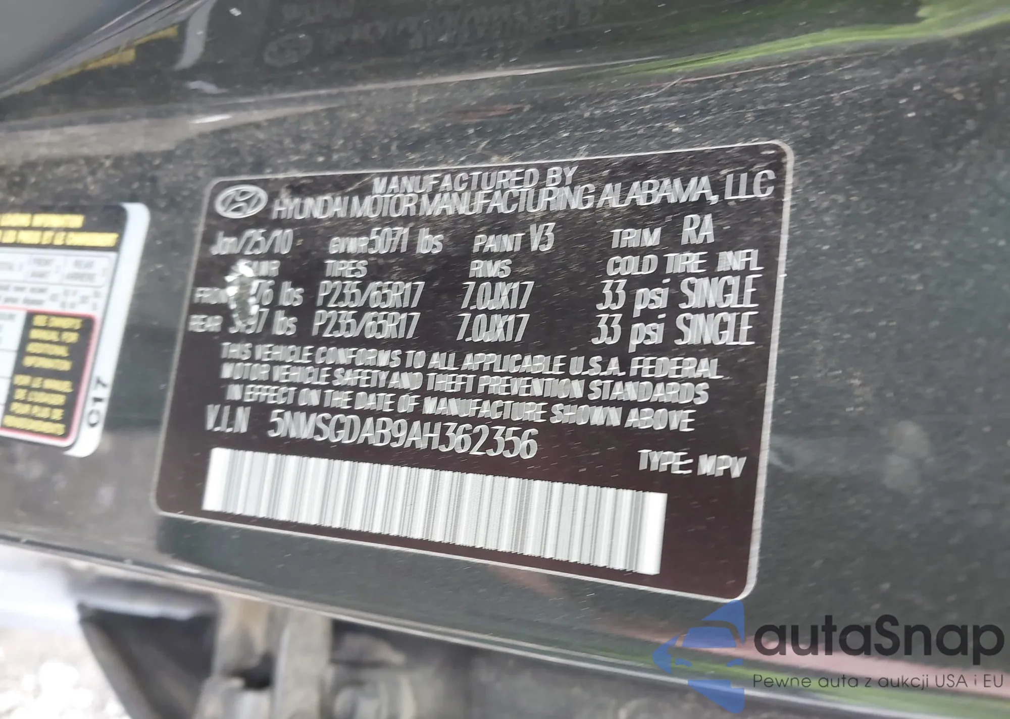 VIN: 5NMSGDAB9AH362356