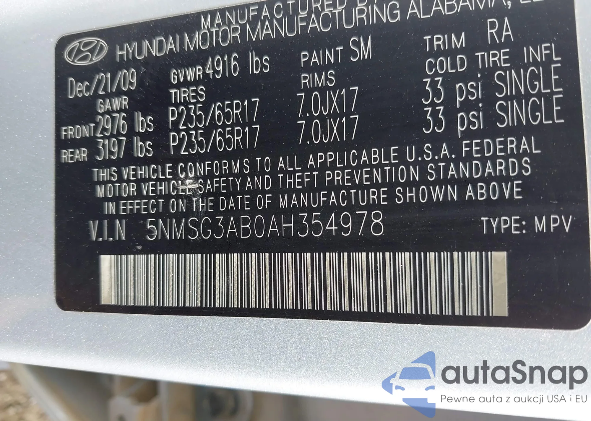 VIN: 5NMSG3AB0AH354978