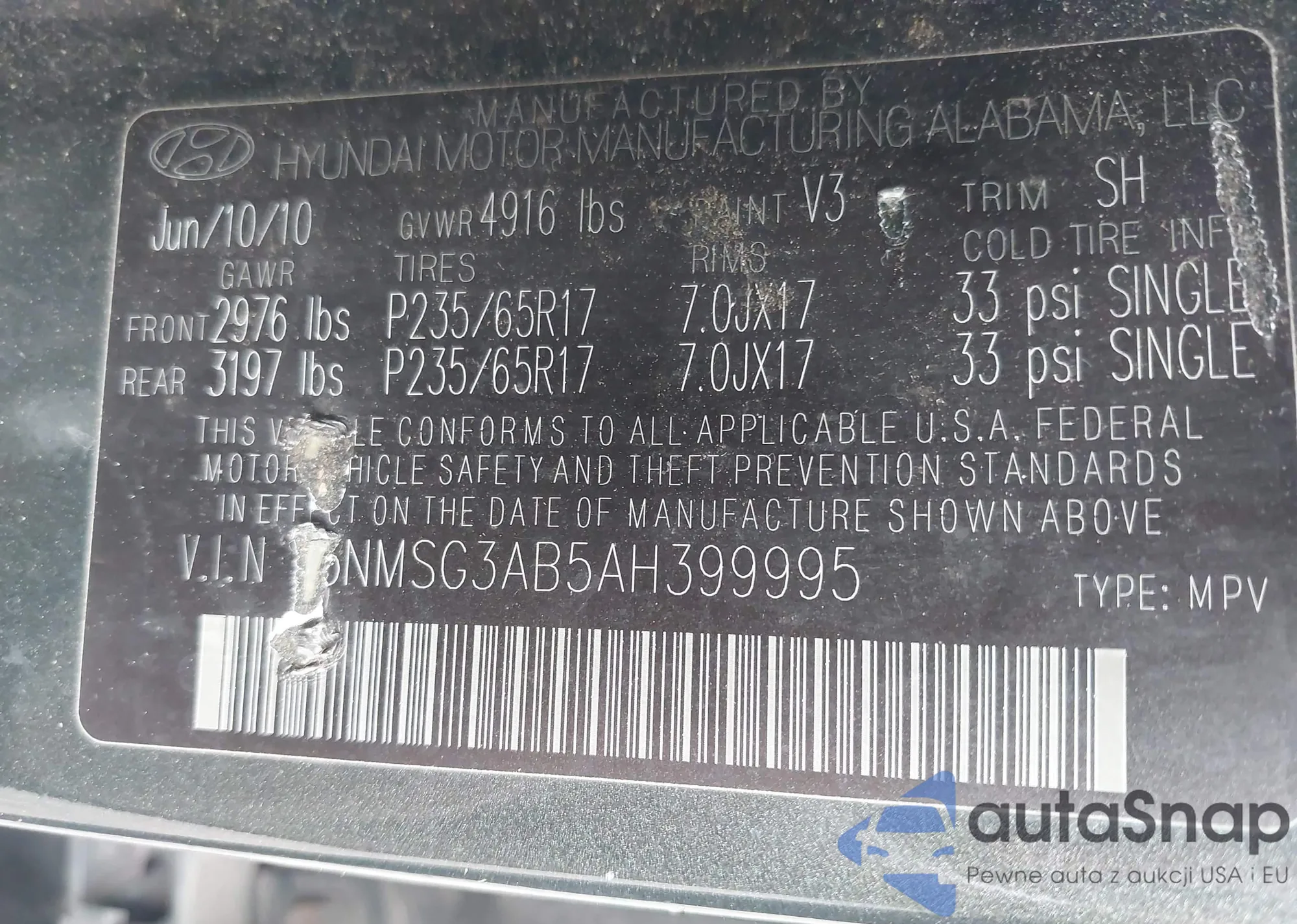 VIN: 5NMSG3AB5AH399995