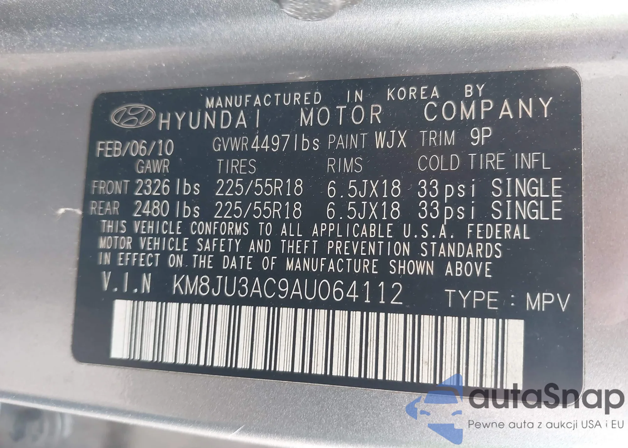 VIN: KM8JU3AC9AU064112