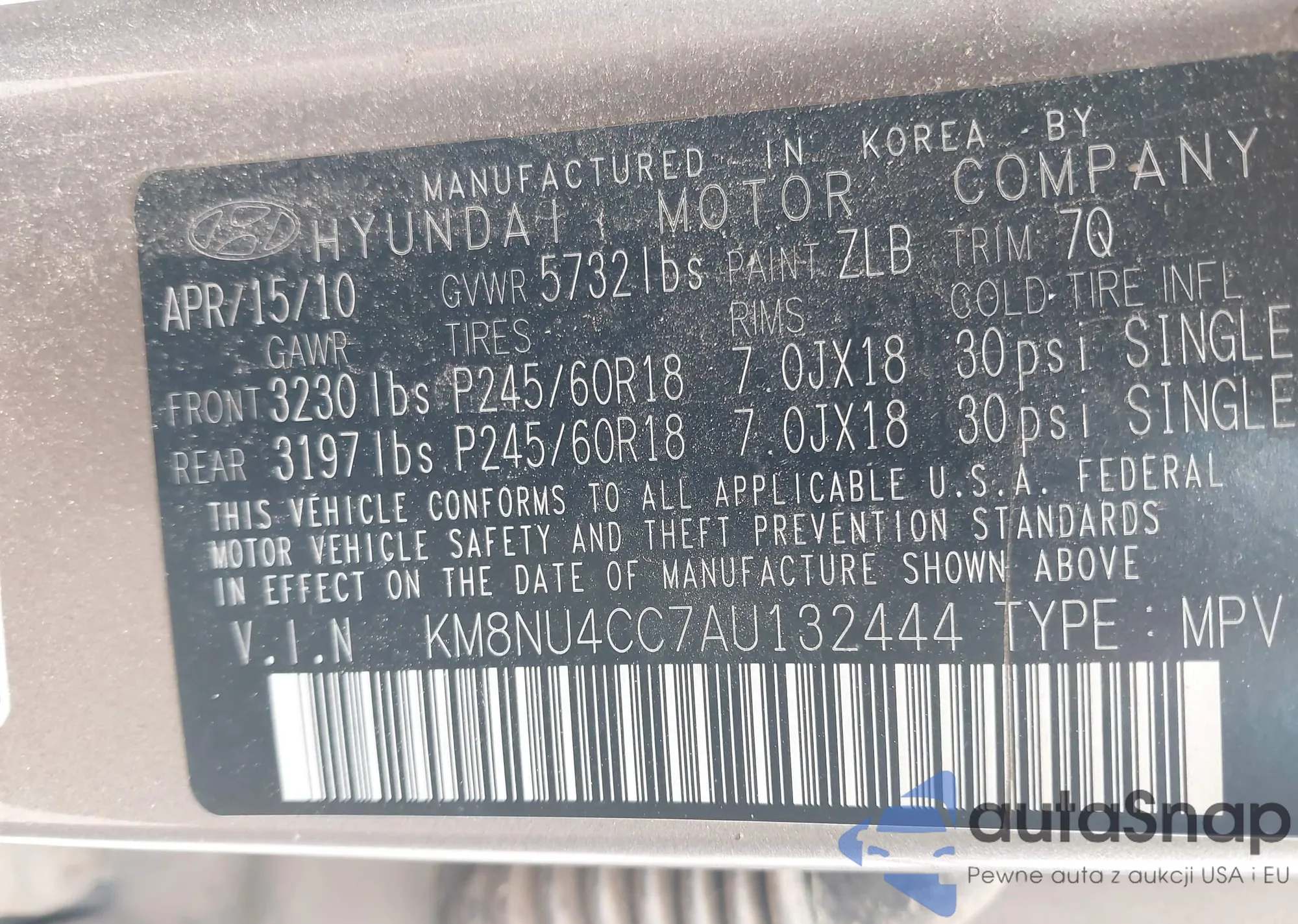 VIN: KM8NU4CC7AU132444